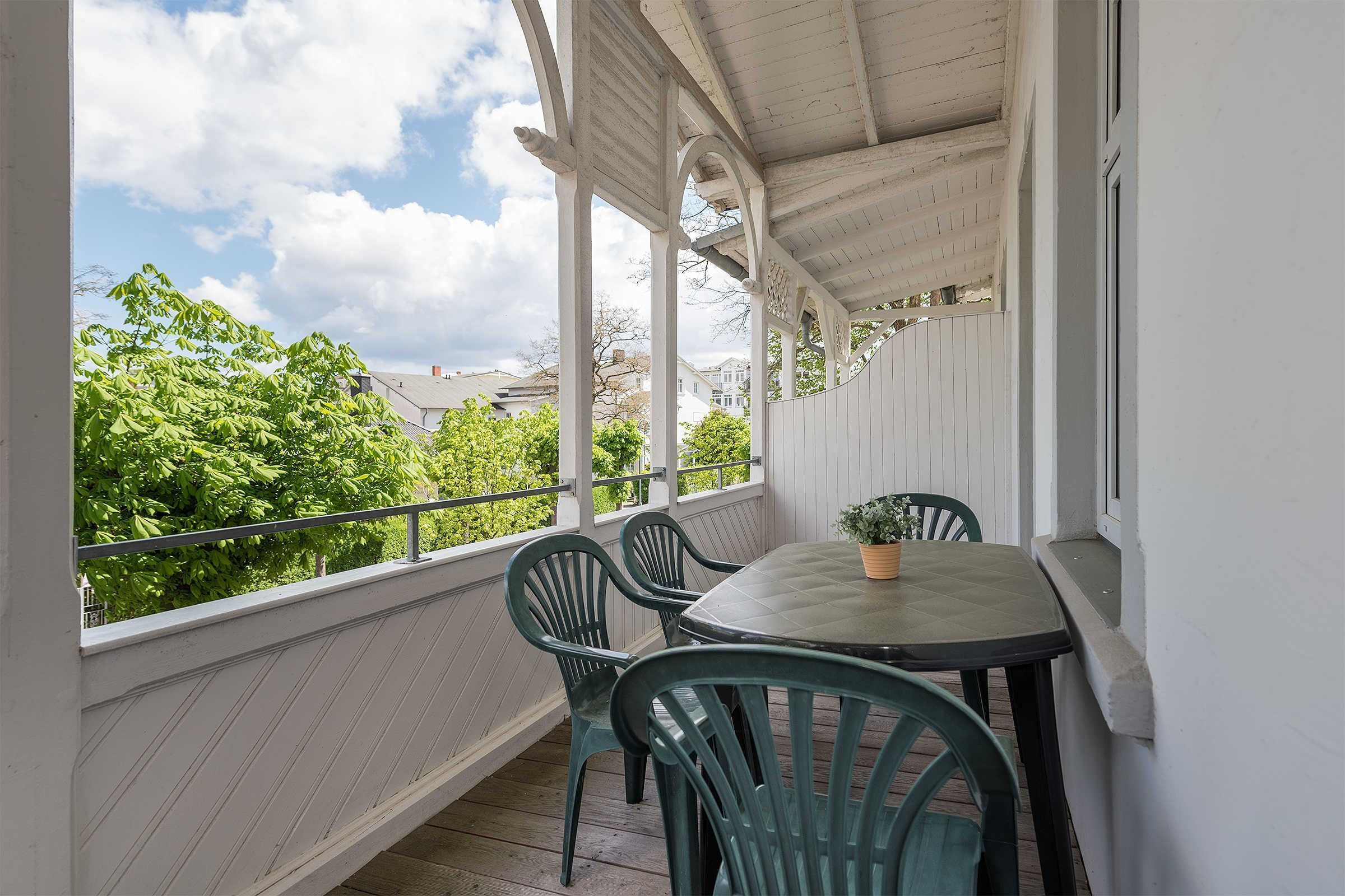 The Villa Metropol was attractively renovated in the nineties. It is in a very central location, only approx. 100 from the fine sandy Baltic Sea beach. The promenade, the Kurplatz and the main shopping street are just a few meters away. With its onion towers, it is a striking eye-catcher with a high recognition value of the spa architecture in the Baltic Sea resort of Binz. Not only the white facade, but also the curved shapes in many windows can be clearly defined as contemporary witnesses. The villa also has its own lift and makes your journey a breeze. There is a storage room for bicycles for all pedal knights.