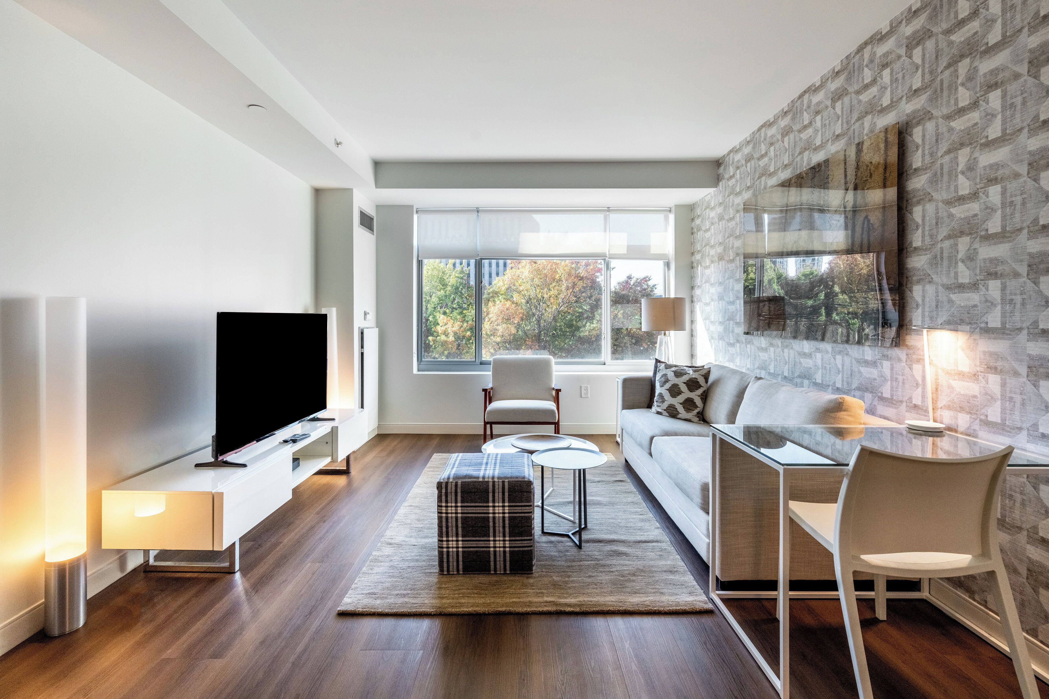 Combine the excitement of Boston with the convenience of being near MIT by staying in this sleek one-bedroom apartment in the heart of Kendall Square. The apartment features expansive windows, and an in-unit washer/dryer. All beds provided are fitted with plush linens and pillows. All Furnished Quarters apartments include 24/7 guest service.