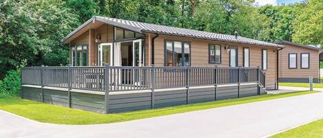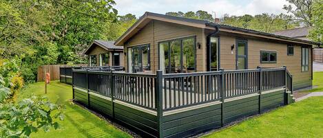 Luxurious lodge with one king-size double, with en suite shower and one twin.