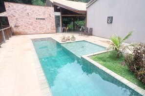 A peaceful and well-located place. Close to the city center, where there are restaurants and shops in general. Bedroom 1 with bathroom, with a double bed and a single bed, balcony with a beautiful view. Bedroom 2, with a double bed and a single bed, balcony with a beautiful view. Social bathroom. Large living room with full kitchen, wood stove and wonderful space with swimming pool. Conservation area, walk in the forest, stream, small lake and waterfall. Holistic space, suitable for practicing yoga, mantras and meditation. Close to trails through the forest, mountains, rivers and waterfalls.