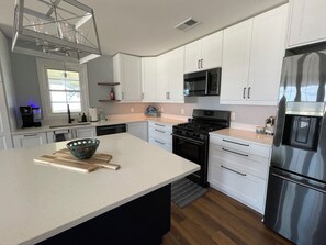 Loved the location, and the updated kitchen is a dream. We cooked a lot and we had access to everything we needed. Everything was well kept and clean, and the common areas were extra great for hanging out and relaxing. Neighborhood was quiet and felt very safe. Place is easy to find and has great views over the water. Communication with owners was easy and quick. We'd stay here again for sure.