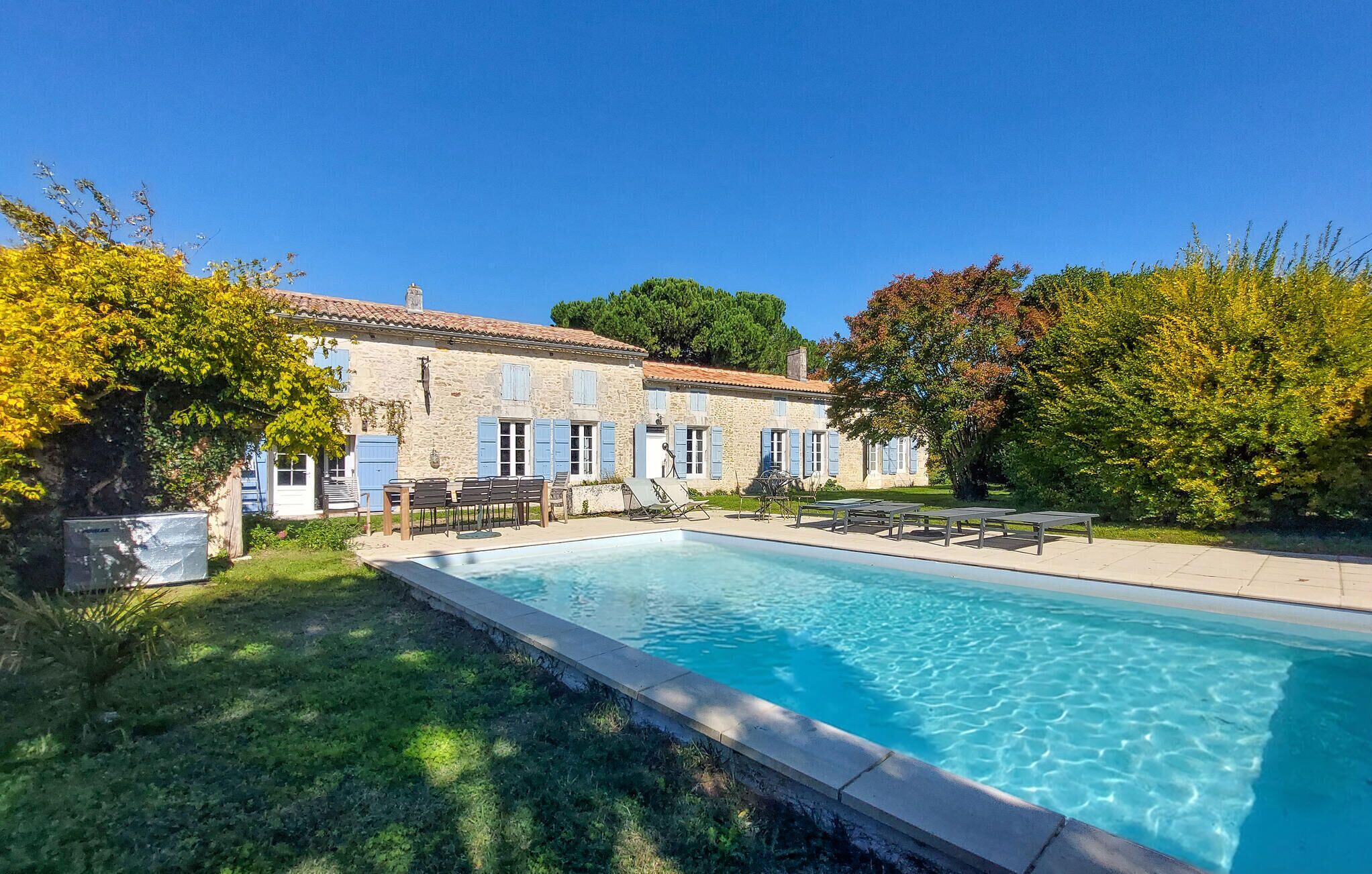 The house is completely secluded, set in more than two acres, plus extensive woods, and completely surrounded by sunflower fields and vineyards, producing wine, cognac, and our local aperitif pineau de Charentes.Tastings can be arranged.