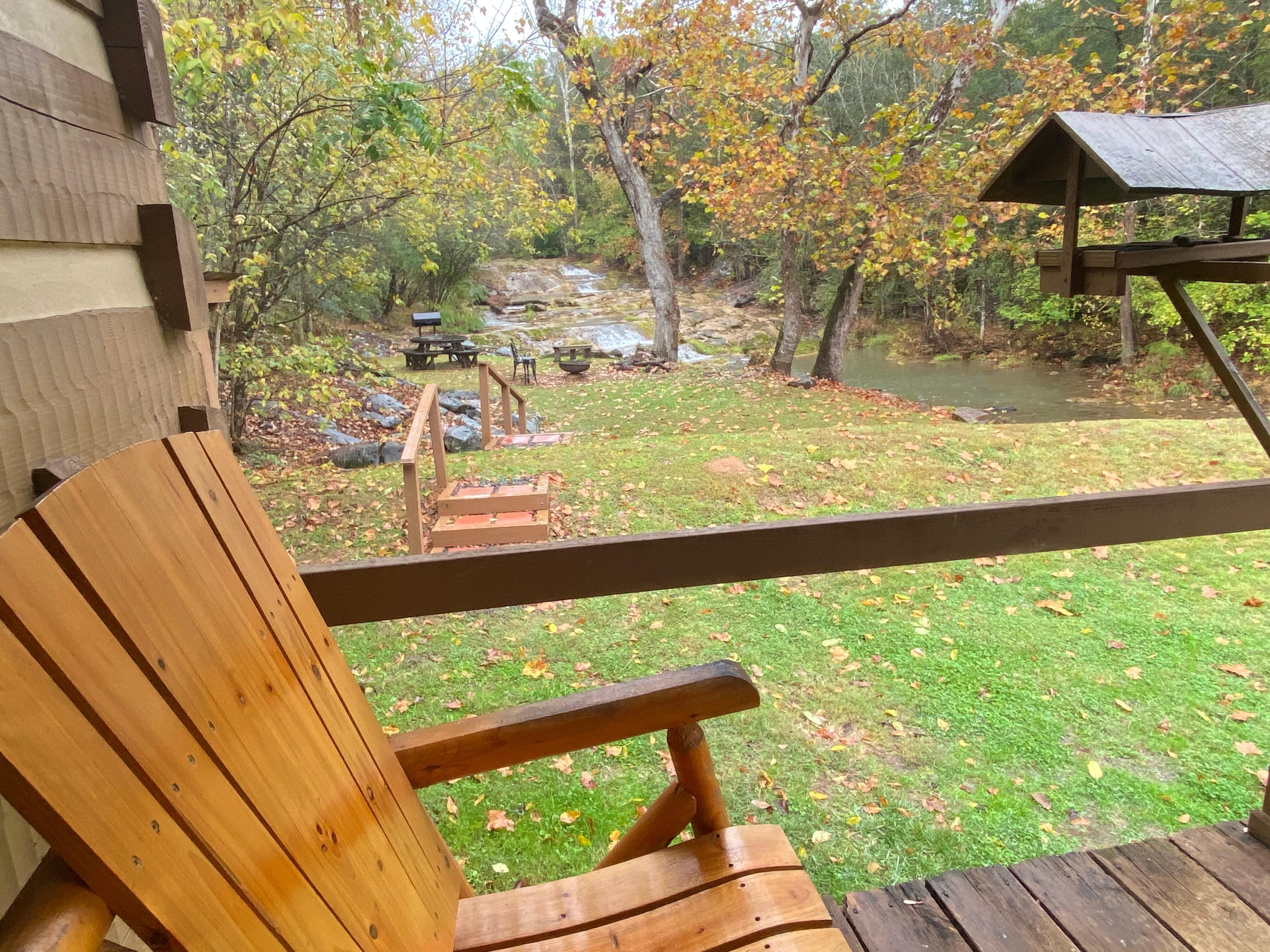My husband and I decided to book this property (on a whim) for the peaceful waterfall and cozy cabin feel. This property did not disappoint! It was the best weekend we have had in a while. This is a wonderful weekend getaway. Sit in the rocking chairs with your feet up and just relax with the sounds of the water rushing over the rocks.Recommend 100%!!!