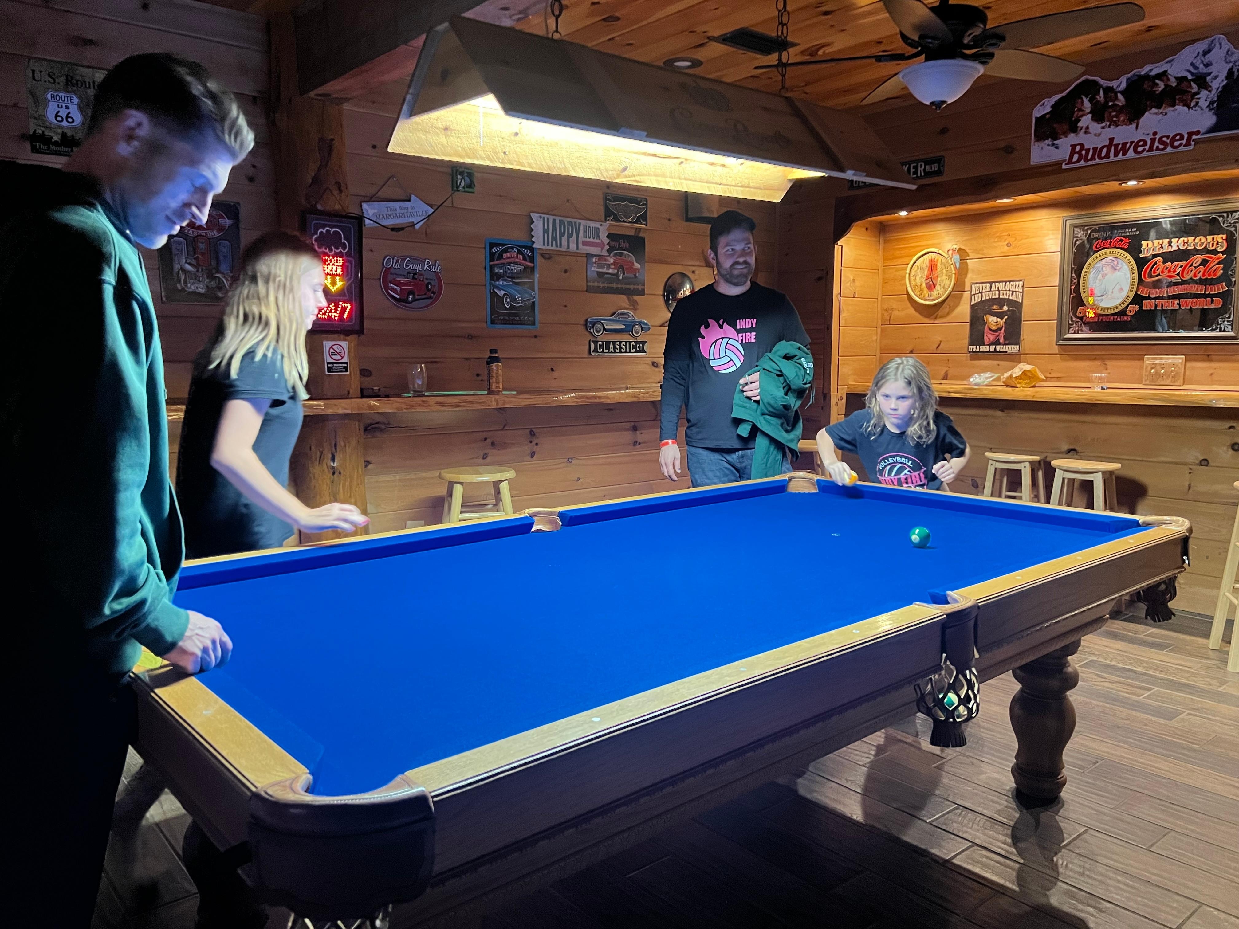 A beautiful wooden pool table will provide hours of fun along with mounted dart board and bar games hidden amongst the intricately themed tavern decor. Guests have the opportunity to enjoy a homemade cocktail while gazing at the tavernâs eye-catching gas fireplace set in ledger stone.