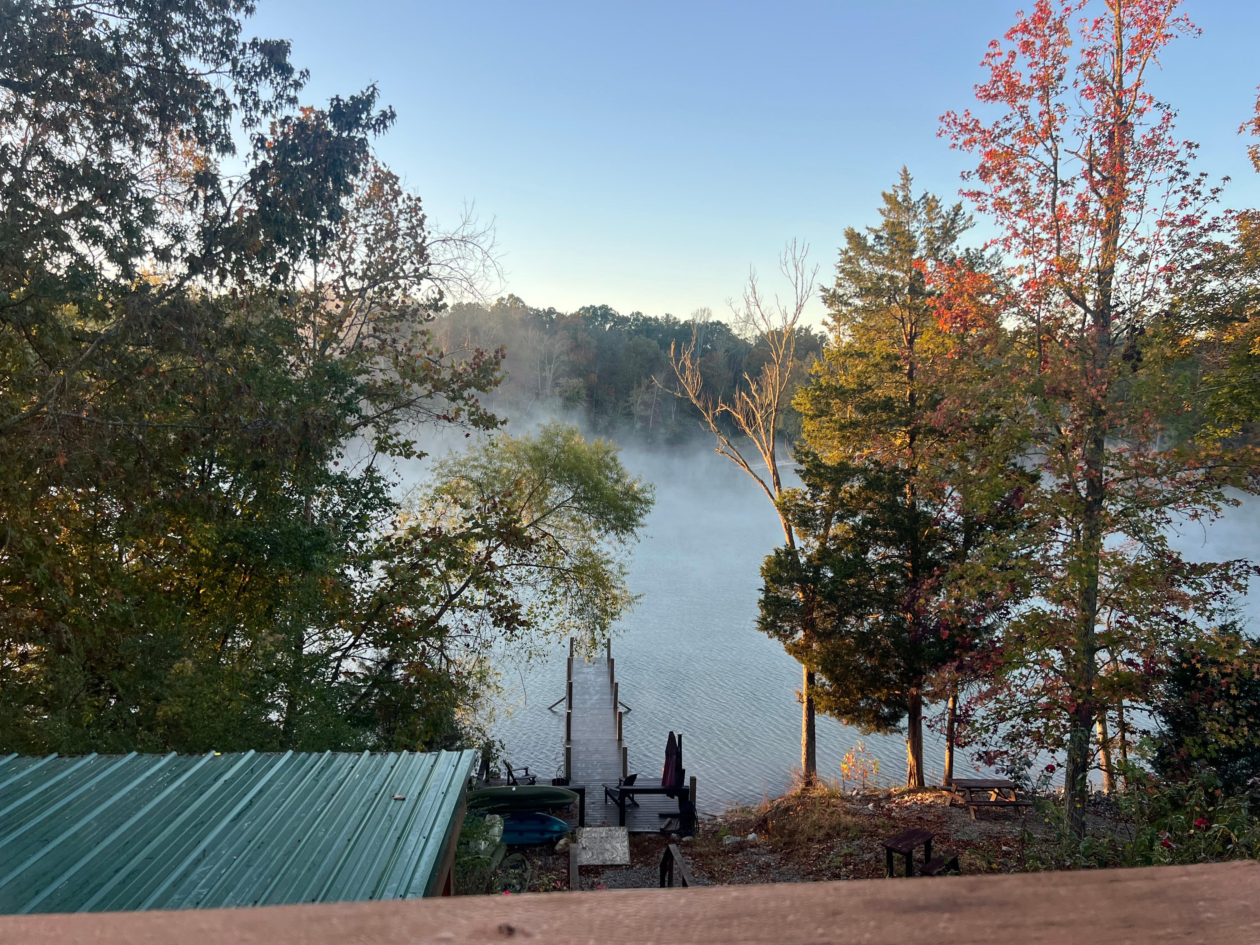 Mystic River Lodge sits on nearly 3 acres of privacy with nature surrounding at every viewpoint. Enjoy a vacation at the highest level of comfort at Mystic River Lodge, an experience in a class all on its own. Mystic River Lodge is a cabin resort nestled in the heart of the Chickamauga Lake, offering access to fishing and swimming during the spring and summer months. Winter months offer fireside warmth, and beautiful winter views. We are conveniently located 15 minutes from food shopping, restaurants and quaint charming downtown area, Fall Creek Park and only 45 minutes traffic dependent from Chattanooga, Ruby Falls and Lookout Mountain. Pontoon boats can be rented from a local Marina for a memorable daytime adventure. Schedule your family reunion or corporate retreat today and come relax.