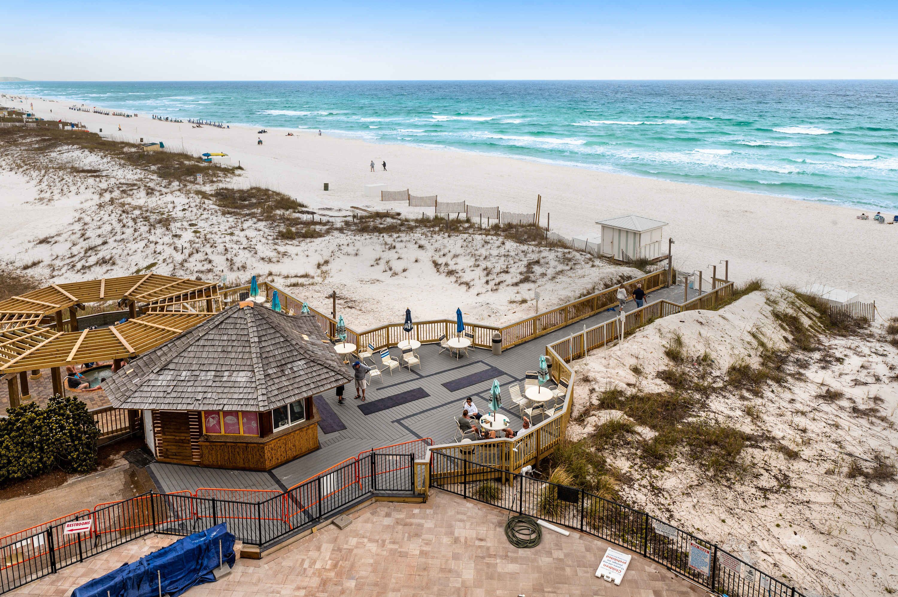 Mingle with the other guests while grilling steak or fresh gulf coast shrimp in the fabulous new grill area next to the heated pool, or go down to the private beach. Additional amenities include a well equipped fitness center with a sauna and steam room, and private pickle ball & tennis courts. While beach chairs are not provided, you are welcome to bring or purchase your own, or rent the on-site beach service. Sorry, personal umbrellas are prohibited, with the exception of baby tents.