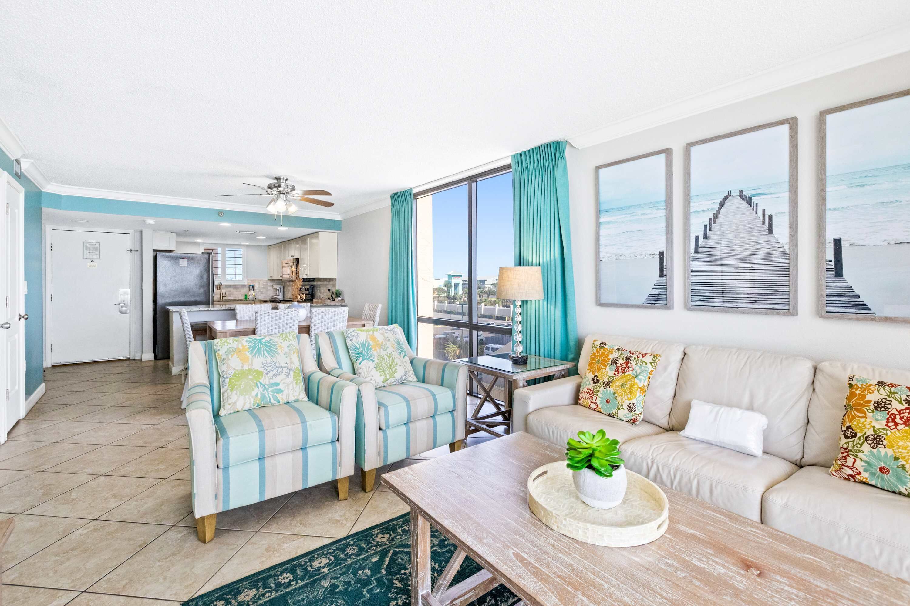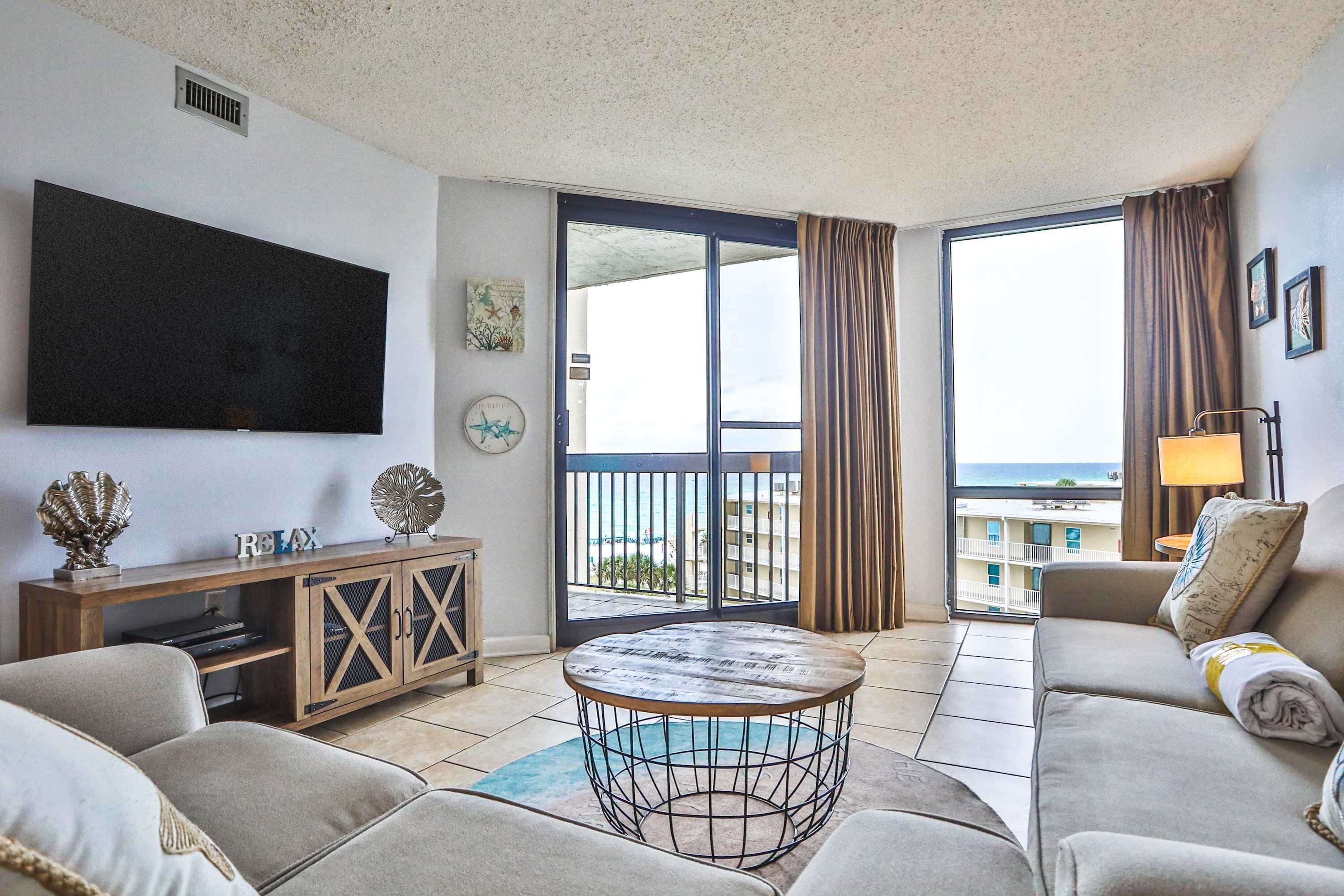 I highly recommend this condo, especially for families! The booking process was smooth, and the check-in instructions were detailed and extremely helpful.The condo itself was immaculate—very modern, spacious, and offering an amazing view! The kitchen was fully stocked with more than enough dishes and cooking supplies, and I especially loved the coffee pot/K-Cup combo. The bedrooms and bathrooms were generously sized, with plenty of storage, an abundance of towels, and even hangers in every closet, which was a nice touch. The master shower was incredible!The beds were comfortable overall. I also really appreciated the numerous extra blankets throughout the condo!The living room TV was HUGE. The internet was easy to connect to and very reliable. The balcony was spacious, though the furniture out there was a bit outdated.The covered parking spot was a bonus—very close to both the stairs and elevators, which were very quick. The pool was heated and had plenty of seating. Beach access was convenient, just over a footbridge with showers/hoses for rinsing off sand. The included umbrella and chair setup on the beach was a fantastic perk!The condo is also in a great location, Starbucks and Chick-fil-A were right across the street, and Dunkin’ was right next door.One of the best things we did was pre-order our groceries. The condo staff picked them up and had everything put away before we arrived.Overall, we had a fantastic stay and would definitely stay here again!