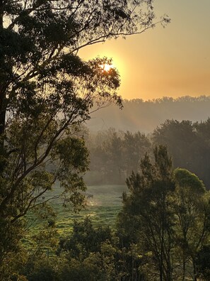 Kingaley is 20 acres of bliss only 7km from the centre of Dungog. Kingaley offers pet friendly entire farm stay experience with a fruit orchard, olive grove, farm animals and a perfectly situated house on the banks of the Williams River. Activities like swimming, fishing, canoeing, hiking, paddling and mountain bike riding are all part of the experience. Or if you just want to chill, the sitting room with views over the valley and a fireplace is perfect for cosy lazy afternoons. The house offers 3 social dining options; balcony with dining for 10, bbq area with large table for 10-12 and indoor dining room for 8. With a rustic fire pit, mountain bike rack storage and a large fenced house yard, Kingaley is a pet friendly paradise that offers peace and tranquility, whilst simultaneously offering lots of activities for those that want to participate. The stylish farmhouse sleeps up to 10 guests. Only 1.15 hours from Newcastle or just 2.5 hours from Sydney, Kingaley is a great place to enjoy the great outdoors with all the modern amenities.