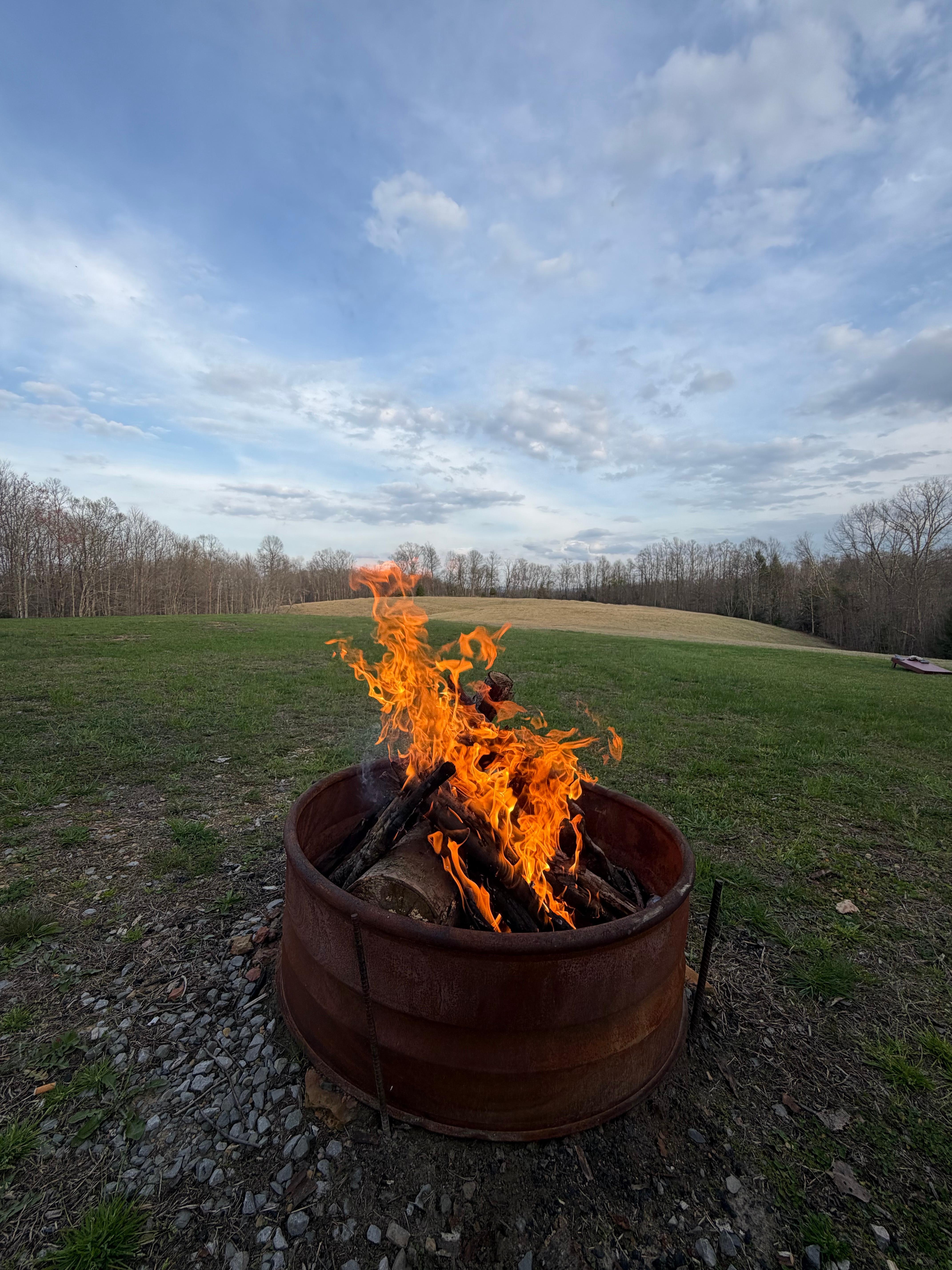 Outdoor firepit with seating. Firewood is available upon request when booking for $10 per day. Just let us know how many days and we can send an invoice after you book or closer to your stay that can be paid online!
