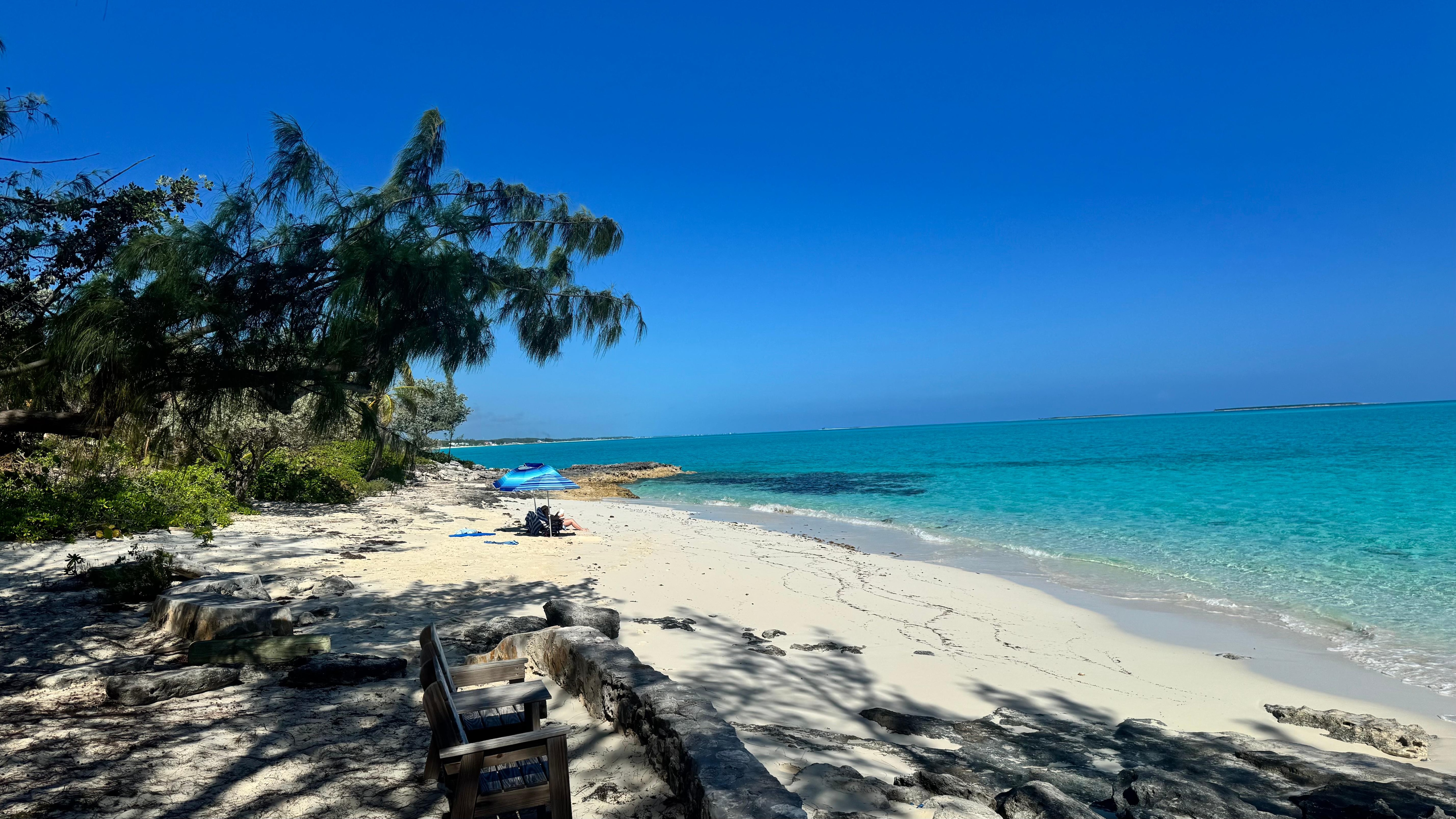 Blue Hues is a centrally located home that sits on over one acre of gardens along with a protected calm water sandy beach and a wonderful reef offshore for snorkeling.We are located in the very private exclusive enclave of Old Hooper's Bay which is a 30 acre private community just west of Hooper's Bay. This center island property is shared with only 7 other seasonal homes and borders its own exclusive community calm water Beach and Park reserve and is tucked away from the main road. Their are no private beaches in the Bahamas but our private (no public access) entrance to Old Hooper's Bay makes our home and beach a very peaceful and most importantly a very private place. Our prime center Island location offers the benefit of easy access to Georgetown and many amenities, which include banking, shopping, restaurants and groceries. The guest house and main house come as one if desired and will never be rented separately to other groups.
