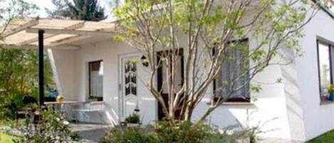 This vacation rental features a shared garden for a peaceful and rejuvenating experience.