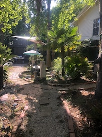 The Bare Foot Bunkhouse is a hidden gem just a stoneâs throw from the beachfront. Yet the secluded gated yard with its multiple fish ponds, sitting areas, lush vegetation and fire pit make it feel like you are miles from the hustle and bustle. We enjoyed having our breakfast alfresco under the gazebo while listening to the morning birds, and likewise appreciated sipping wine in the evening serenaded by frogs. The accommodations were clean, the decor was lovely and the place is well-equipped for two people to stay comfortably. Although you could stay here with children, it might be a bit cramped and you would probably be more comfortable in one of the other two rentals on property. Touches like quality toiletries, laundry detergent, tv trays and extra blankets show that the owner went out of her way to make sure all needs are met, and she immediately responded to a text about something we were looking for. Everything we needed for the beach was provided: an umbrella, chairs, a cooler and even a wagon to transport it all. Even on the weekend, the beach was nearly deserted (except for the stunning display of birds - skimmers and terns, gulls and osprey, even a bald eagle). We walked a couple miles along the shore for breakfast beignets from the Beignet Cafe, and multiple restaurants are just a short drive away. We highly recommend the Bare Foot rental property and would absolutely return if we visit Gulfport again.