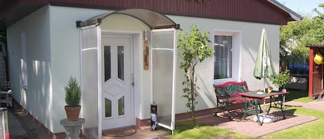 The 30 sqm non-smoking apartment is located on the first floor in the house of the landlord and is equipped with laminate flooring. The apartment has a combined living / bedroom with double bed, Child bed is possible as well as a comfortable couch, TV and radio and dinette. The separate kitchen is equipped with two hotplates, microwave, refrigerator and coffee maker. Bathroom with shower and toilet. The initial bed linen and towels is included in the price.