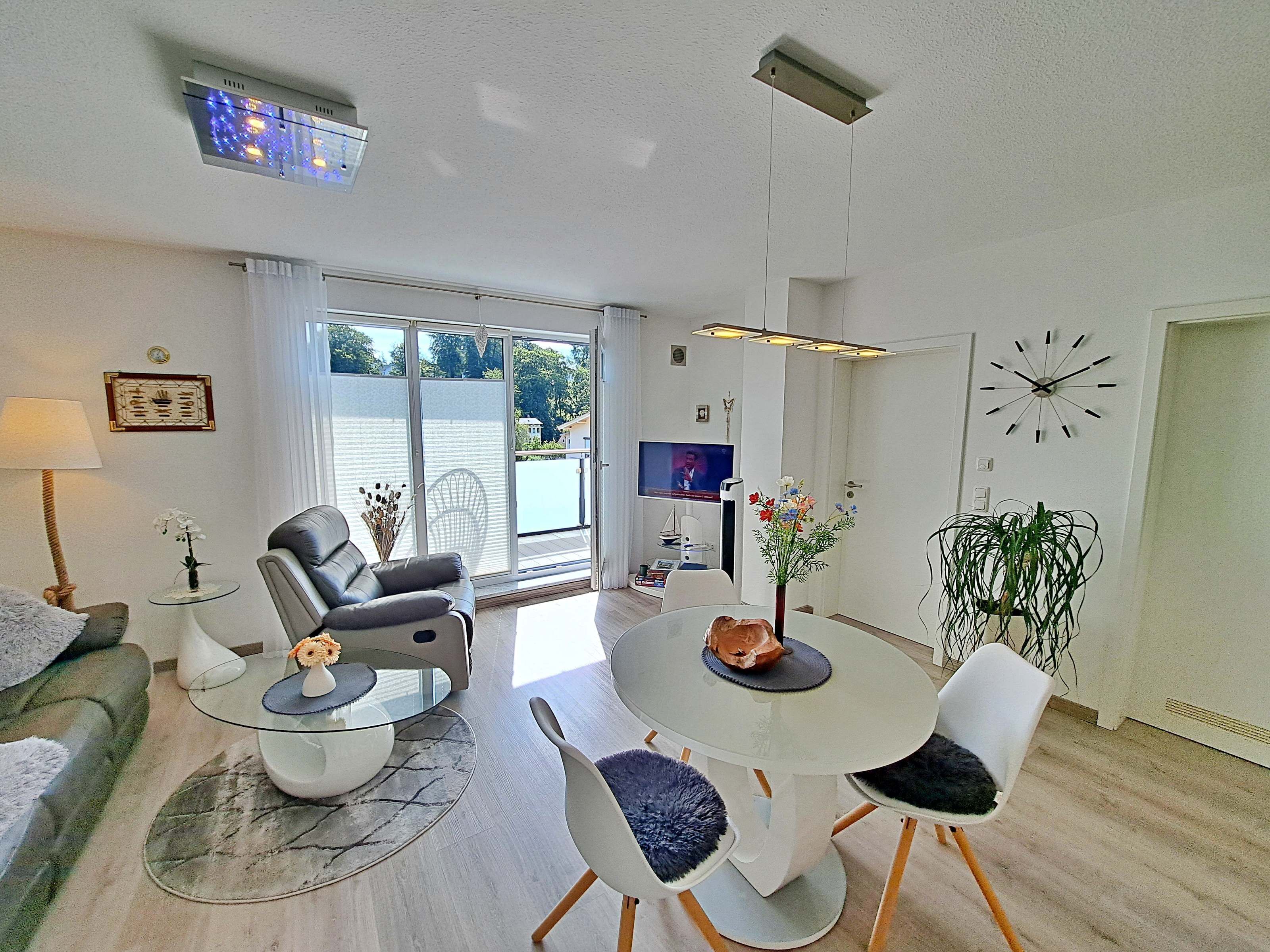 Geschmackvoll eingerichtet, Terrasse wirklich schön. Sehr gepflegte Wohnung. FußlĂ€ufig zum Strand 6 Minuten, in die Stadt 15 Minuten, zur E-Tankstelle 3 Minuten, zum Edeka/Aldi 5 Minuten. Lage somit hervorragend.