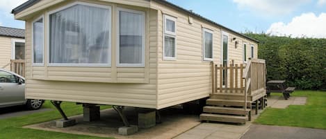 Very comfortable, modern and contemporary caravan with one double and two twin.