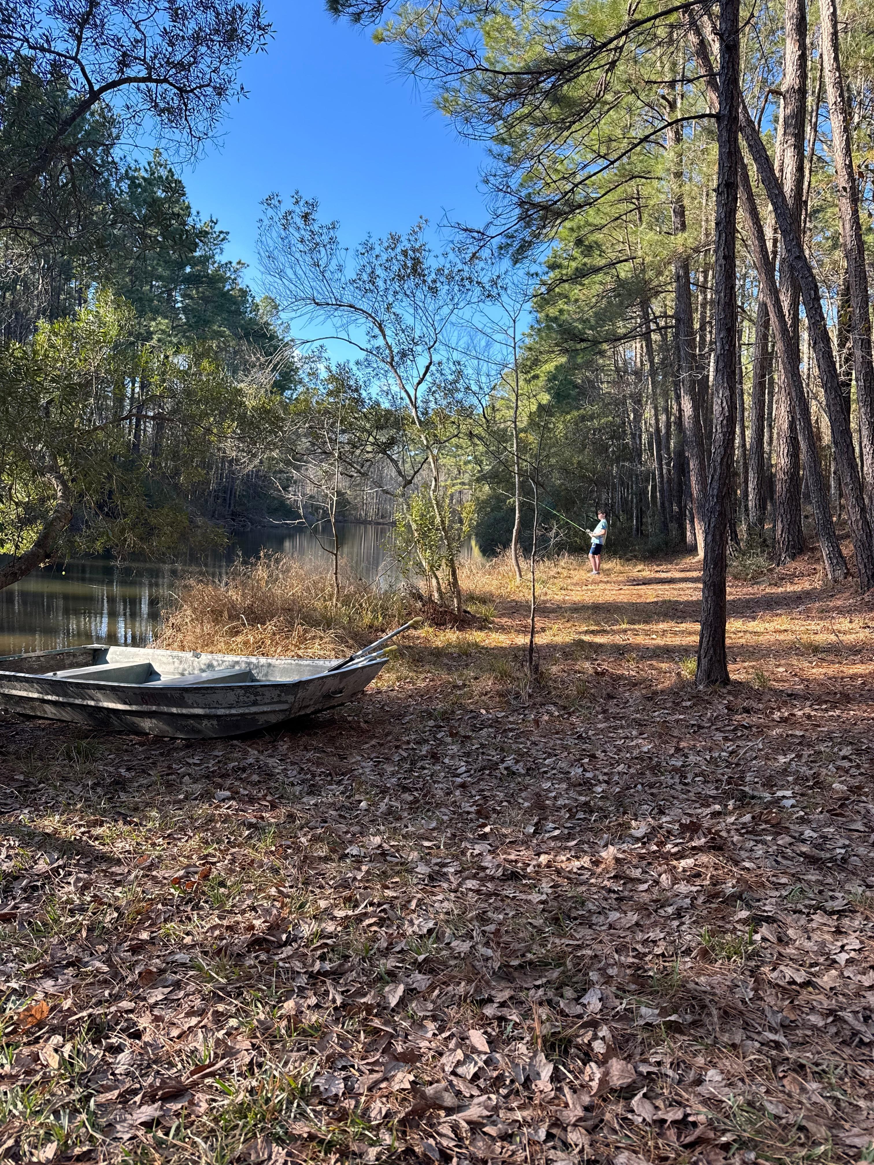 Remote location in Huntsville, TX. This is a restored 1973 Airstream. The cozy space features a full bed, AC, heating, bathroom, fire pit, private lake and paddle boat. Enjoy, fishing, hiking, campfire, or just relaxing in nature. This camper sleep 2 adults and 1 child on the daybed/couch. Pets allowed! No leash required.
