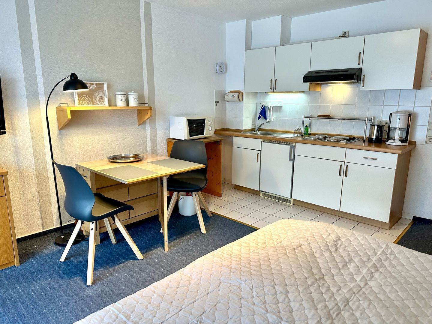 The cozy bedroom with a double bed can accommodate 2 people. An extra bed is possible in the living room for two additional people.