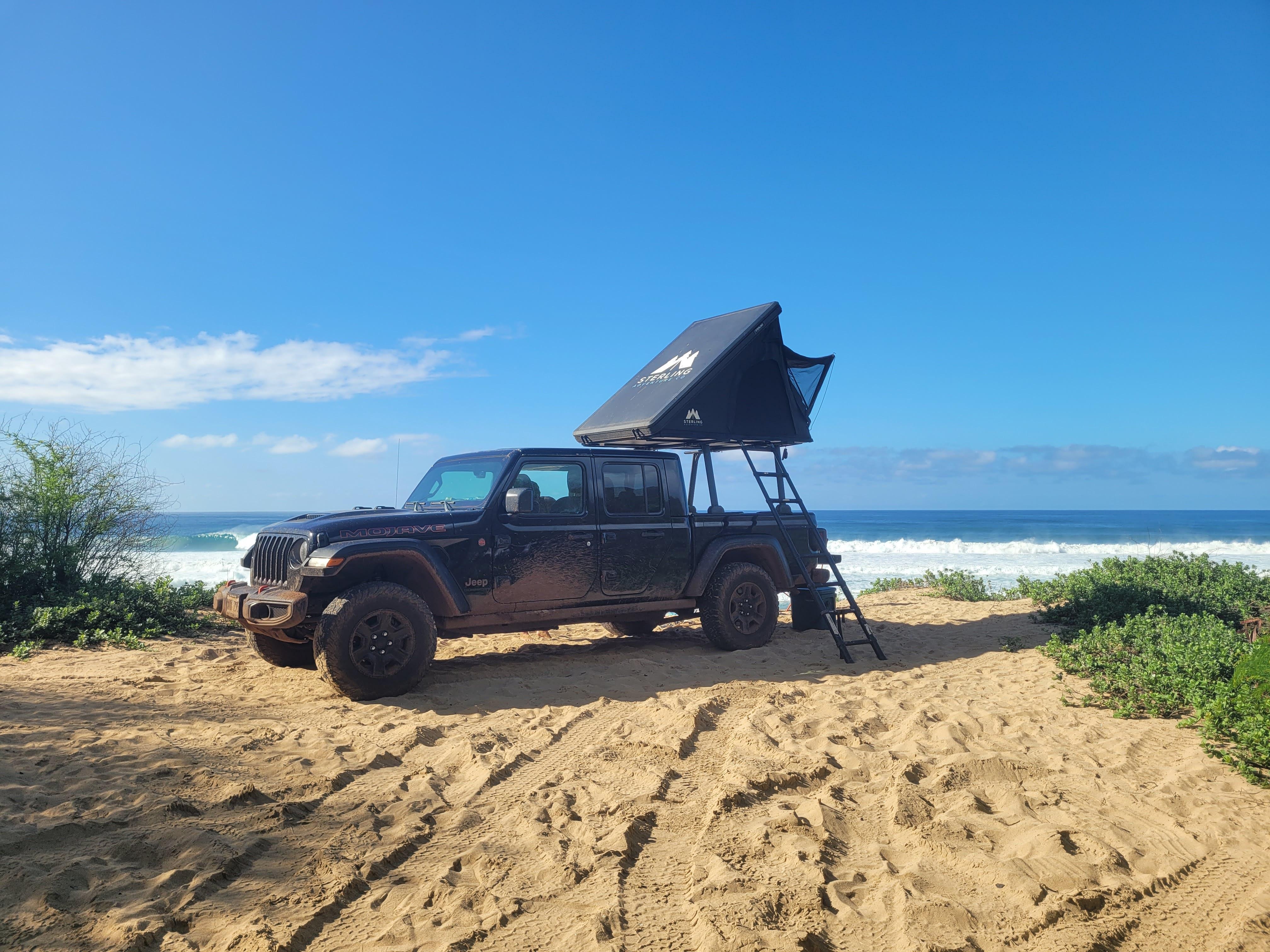 Aloha! This is a perfect 2-in-1 experience unlike any other to explore the island! Enjoy Kauai’s most authentic way to visit with one of the only outfitted Jeep Gladiator Mojave’s on island! After booking, we offer a hand crafted guidebook that we created from years of experience and exploring the island of Kauai. The guidebook includes camping locations, as well as recommendations for food, hiking, and excursions! You’ll be riding and camping in style with the 4WD, lift kit, and 33 inch wheels. Our space includes all necessary camping gear and supplies, as well as a hard shell roof top tent with a comfortable mattress to sleep on! Must be 21 to book!