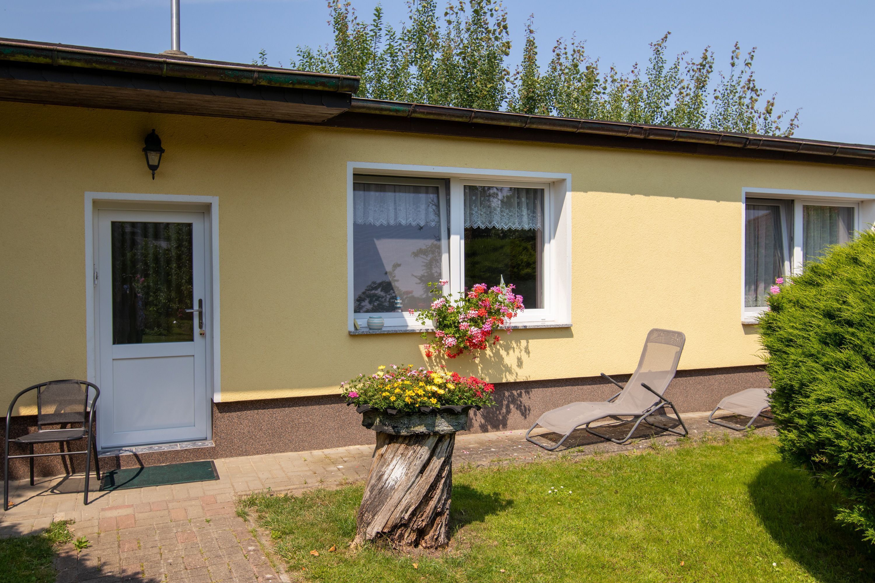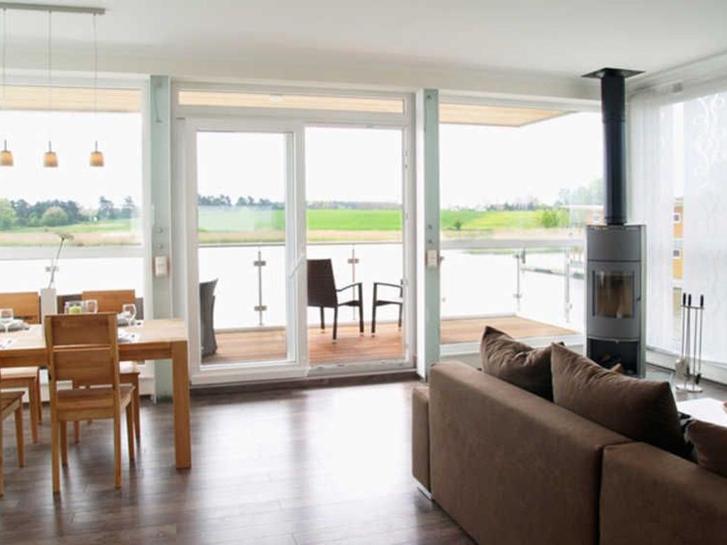 The two cozy 35m² 1-room apartments are located next to each other on the top floor of a residential building in Kröslin. The house is quiet and only about 400m walk from the marina. Both apartments have a living room / bedroom with a comfortable double bed, sitting area with TV, dining table and kitchen corner. The kitchens are equipped with 2-ring hob, fridge, kettle and coffeemaker. The bathrooms have shower and toilet. Each apartment has a spacious balcony with seating. In Kröslin there is a large marina with water sports facilities, a restaurant and a Personenfährverbindung to Usedom. The Krösliner Cycle combines vorpommersche mainland with the island of Usedom and Wollin Peninsula. In the neighboring Freest is a small beach.
