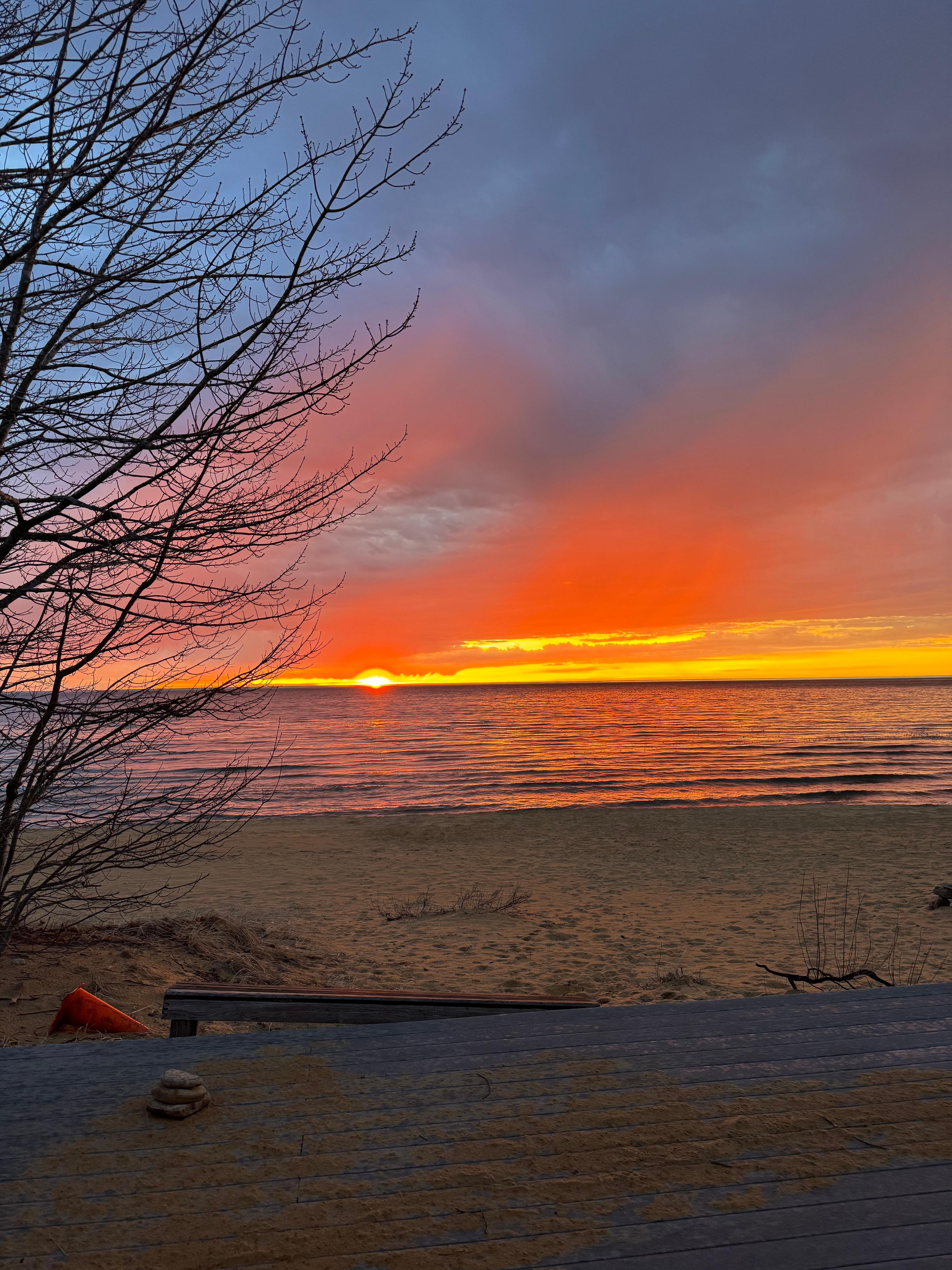 Beach is 100+ feet deep and 200 feet wide--providing ample room for almost any kind of beach activity, including volleyball (volleyball net available). Outdoor burn pit on beach, with surrounding benches. Gather around the fire, cook up s'mores, listen to the waves and wildlife. You'll feel that stress fade away.