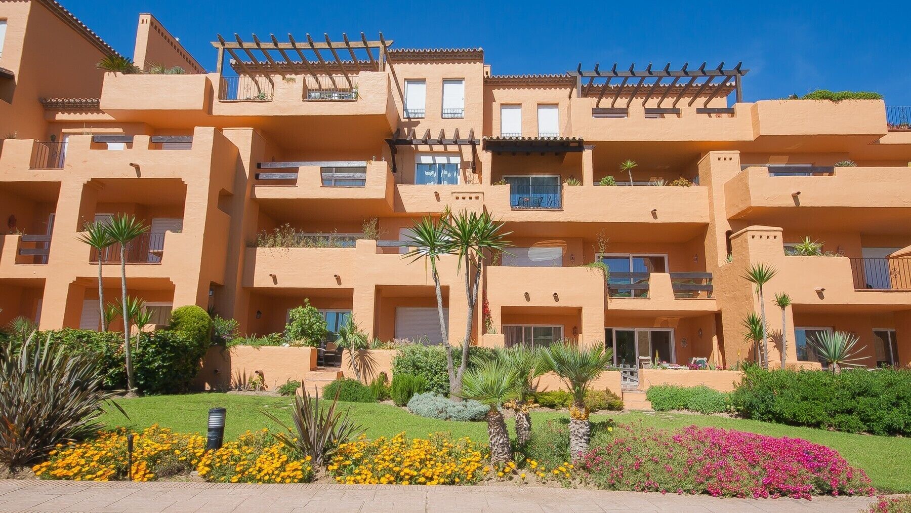 Located in the beachfront complex of Los Granados de la Duquesa there is a large lagoon style swimming pool and well maintained gardens. The complex also has underground parking, 24hr security and is a short walk along the beach to the fishing village of Castillo and Duquesa marina.