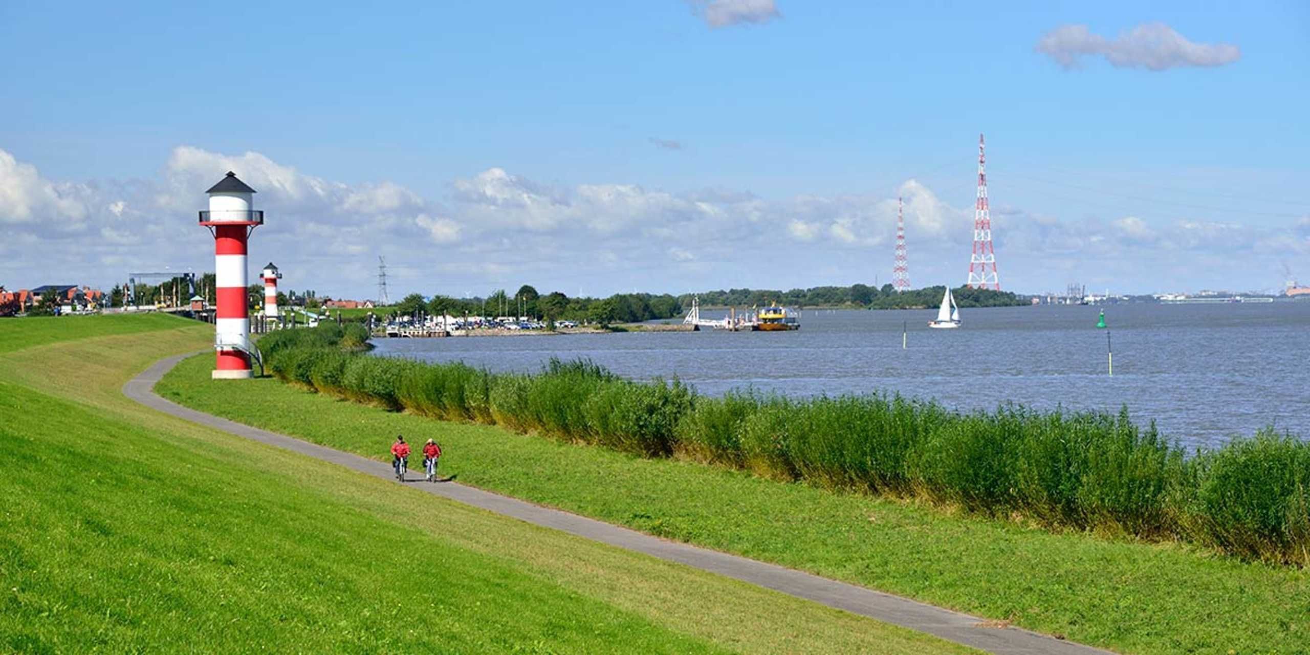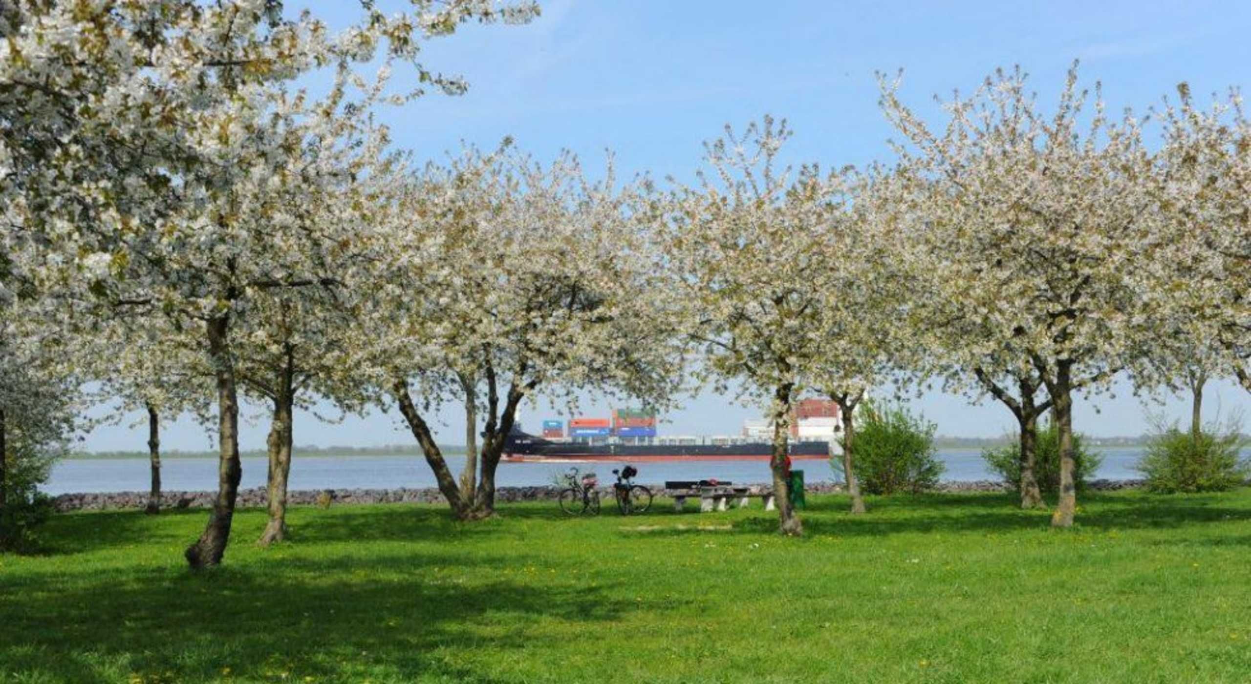 Our apartments are spacious and includes everything you would expect from home. The apartments are u. a. equipped with washing machine, flat screen TV, DVD / Video, stereo system and DSL WLAN connection. The kitchens have a dishwasher, oven, microwave and various small kitchen appliances. Our house is located in the Samtgemeinde Lühe, district Mittelkirchen. Within sight is the Elbe and you can watch the ships sailing there on their way to or from Hamburg. Close to our house you will find an EDEKA market and a restaurant with sun terrace, directly on the Lühe. The following transport links are available: bus to Stade, Buxtehude, Jork, Steinkirchen approx. 200 m away; Highway A26 approx. 6 km, S-Bahn connection direction Hamburg - Cuxhaven approx. 6 km; Fährverbindung Lühe - Schulau 4km The apartment house has a garden with several landscaped terraces that can be used by the holidaymakers of the apartments. Sun loungers, garden chairs and tables are sufficiently available. Also available to our guests a gas grill for a BBQ.