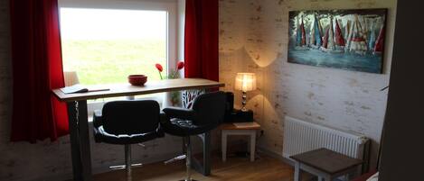 Our apartments are family-friendly, barrier-free and partly wheelchair accessible. All with separate entrance and parking space in front of the door. A care bed can be provided in SĂŒder- or Norderoog for an extra charge. Bicycles, surfboards etc. can be stored in the shed. There is a bus stop opposite the farm.