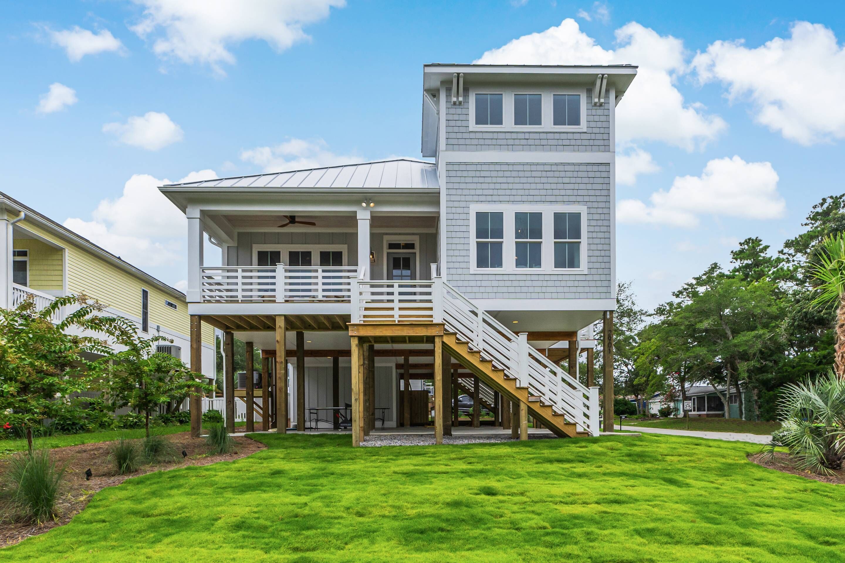 Blissful beach days await at this 5BR / 3BA retreat! An enviable second-row location keeps you just steps, 100 yards to be exact, from toes in the sand and riding the waves. The lower unit is new with beautifully appointed decor, high end appliances, and new furniture!