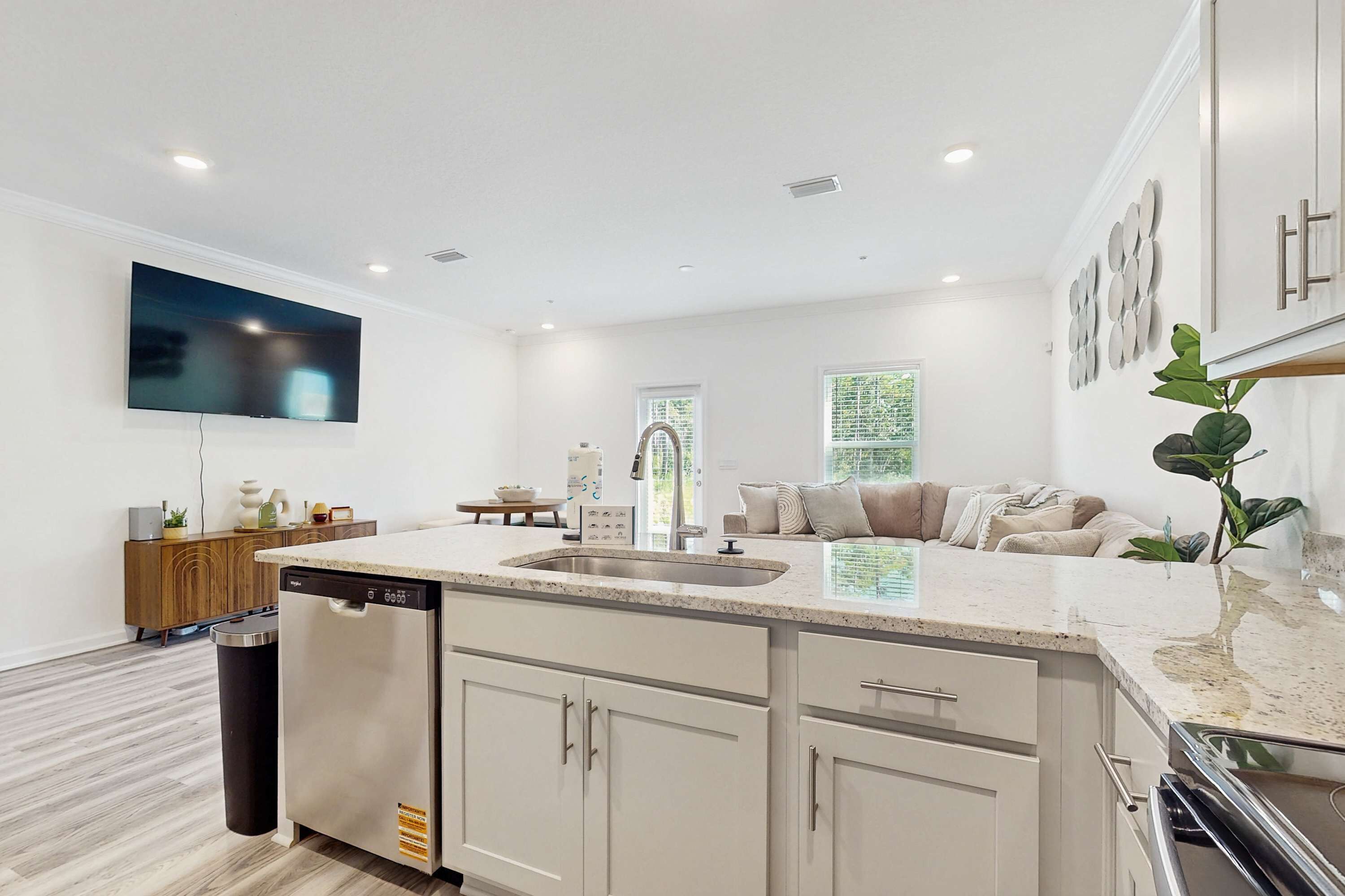 When you arrive at The Wharf for your stay, you'll see that this condo has been newly renovated with charming accessories for a luxurious experience on the gulf coast. Perfectly located at The Wharf, you are steps from shops, restaurants, and entertainment. The amenities located inside the Wharf Entertainment district are nearly endless! Lounge around at The Oasis, which has a lazy river, spa, wave pool, large pool with waterfalls, kids area, and bar and grill. Dine at the variety of restaurants after you finish walking through all the shops featured on Main Street. Check out the Marina, movies at the theatre, amphitheater concerts, fun games like laser tag, ride the Ferris wheel and enjoy the nightly light and sound show! Waking up with a coffee shop that serves breakfast and a beignet cafe makes it convenient for those lazy mornings. Everyone is sure to find something they enjoy with all The Wharf has to offer. This beautiful spacious 1,334 square foot 2 bedroom, 2 bathroom condo is set with a dinner table and a breakfast bar, ready for delicious meals with the family. Not to mention, a fully stocked kitchen with a gas stove and wine fridge. Sit on the balcony and cook your dinner on the private gas grill and listen to the live music coming from the marina. The primary bedroom features a king size bed, with a sliding glass door with access to the balcony. The large attached bathroom features double sinks with a relaxing soaking tub and a walk-in shower. The second bedroom features two queen sized beds with an attached bathroom with a walk in shower. Enjoy the stunning sunset views from the balcony overlooking the inter-coastal canal on the 9th floor. Making your stay more carefree, there is a washer and dryer in the unit. To help us keep things comfortable and in great condition for everyone, we ask that there are no parties, loud music, or events. The home is for registered guests only, and we kindly ask that the number of guests not exceed what’s listed in the reservation. Out of respect for the space, please avoid hanging any decorations or using tape on the walls, as it can damage the paint. We welcome you to come share our second home and make lifelong memories with your loved ones!