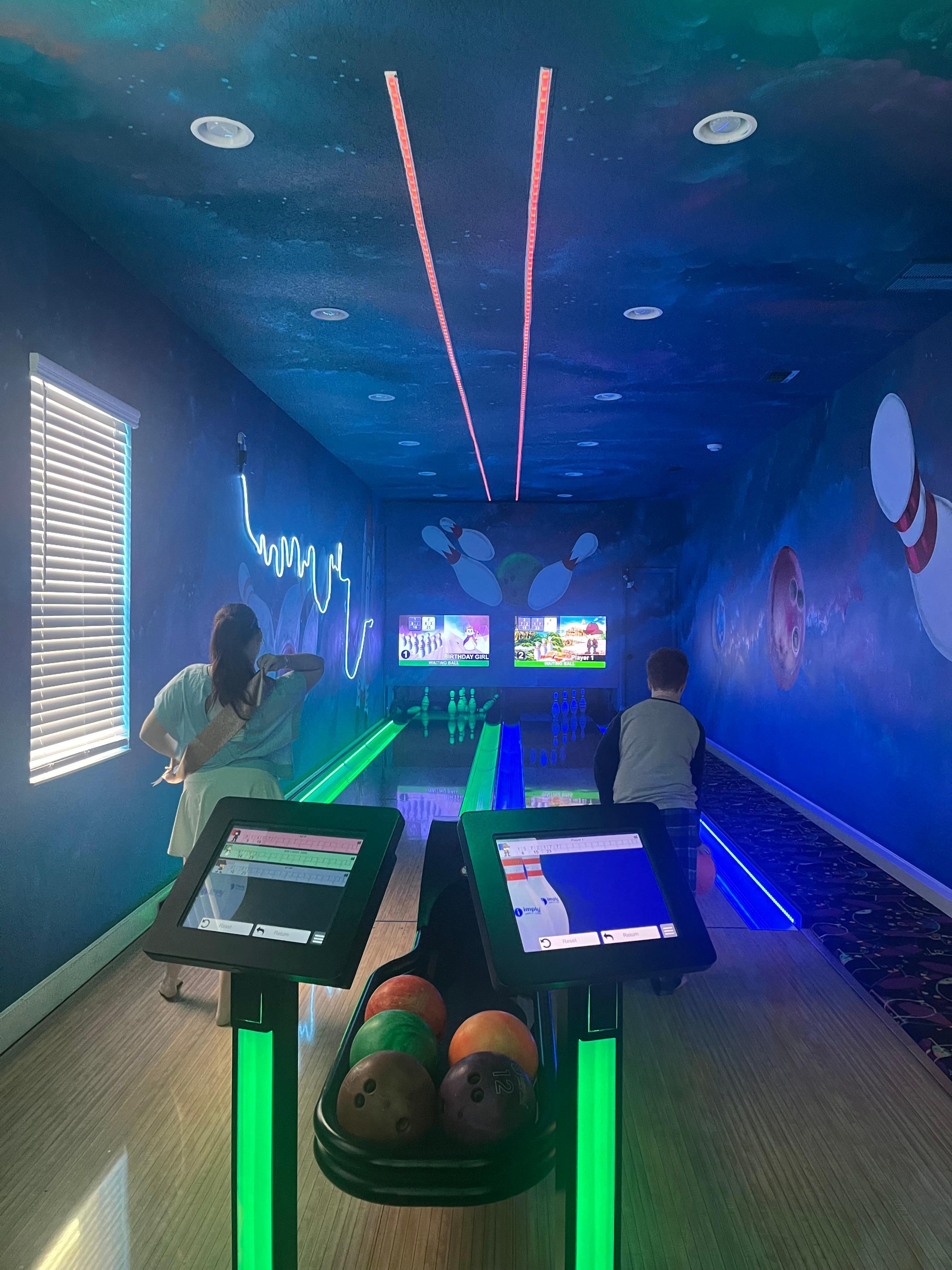 -PRIVATE BOWLING ALLEY: 2 lane full length bowling alley for complete family enjoyment.