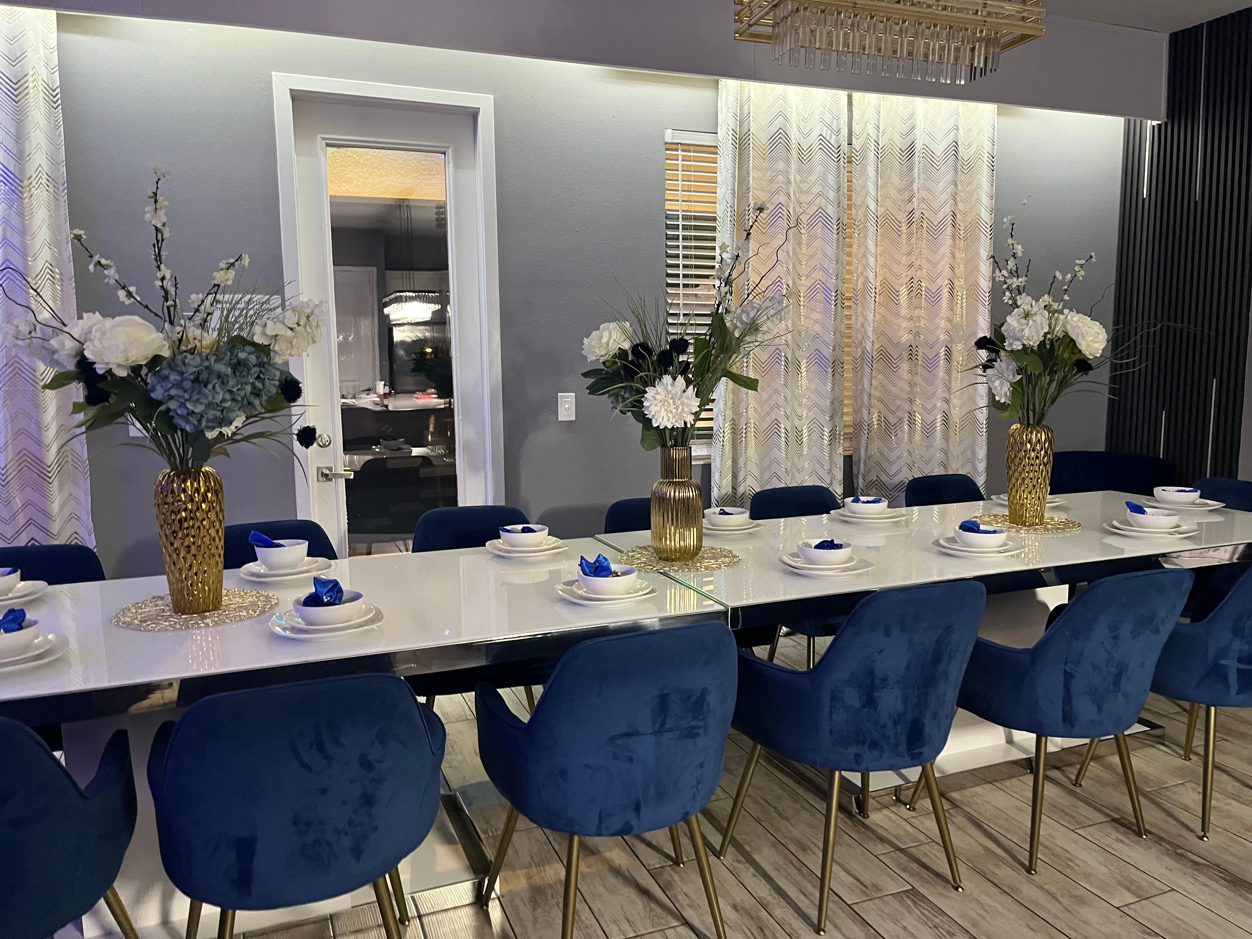 -PRIVATE HOME THEATER: with seating for 22 guests, Karaoke Machine, and a large movie screen.