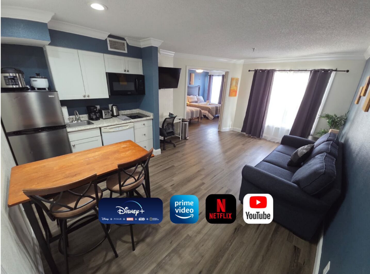 Studio King Bed at 1.5 miles from Disney. Pool, Clubhouse with Laundry, Gym