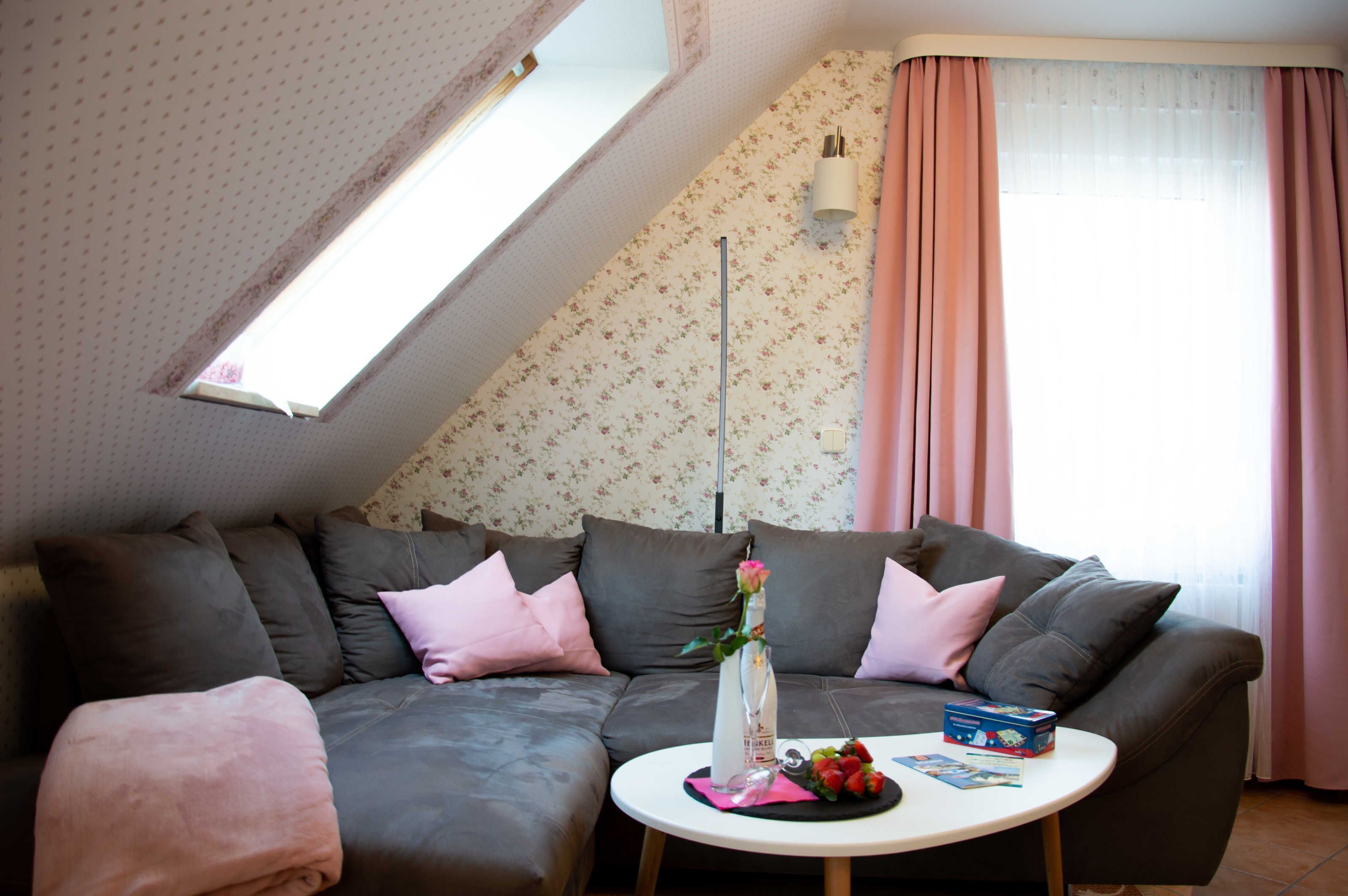 Our Fritz apartment is approx. 70 square meters, has space for a maximum of 4 guests + 1 child up to 3 years in a travel cot and has been lovingly and comfortably furnished. There is a spacious living room on the ground floor. There is a sofa bed with table and armchair and a flat-screen TV, as well as the kitchenette with dining table and chairs. The kitchenette is equipped with a stove, oven, dishwasher, extractor hood, kettle, coffee machine, toaster, sink and refrigerator. A staircase leads to the upper floor where the two bedrooms are located. The 1st Bedroom offers a comfortable double bed with bedside table and reading lamps and a wardrobe. The 2nd Bedroom is furnished with 2 single beds, bedside tables and reading lamps and wardrobe. A small travel cot and a high chair can be provided free of charge on request. Upon request, the beds can be covered with bed linen upon arrival for an additional charge of 15 euros. We kindly ask you to bring your own towels. The bathroom is equipped with a shower, toilet and sink. Our guests can use a meadow at the house with a terrace and garden furniture as well as a barbecue.