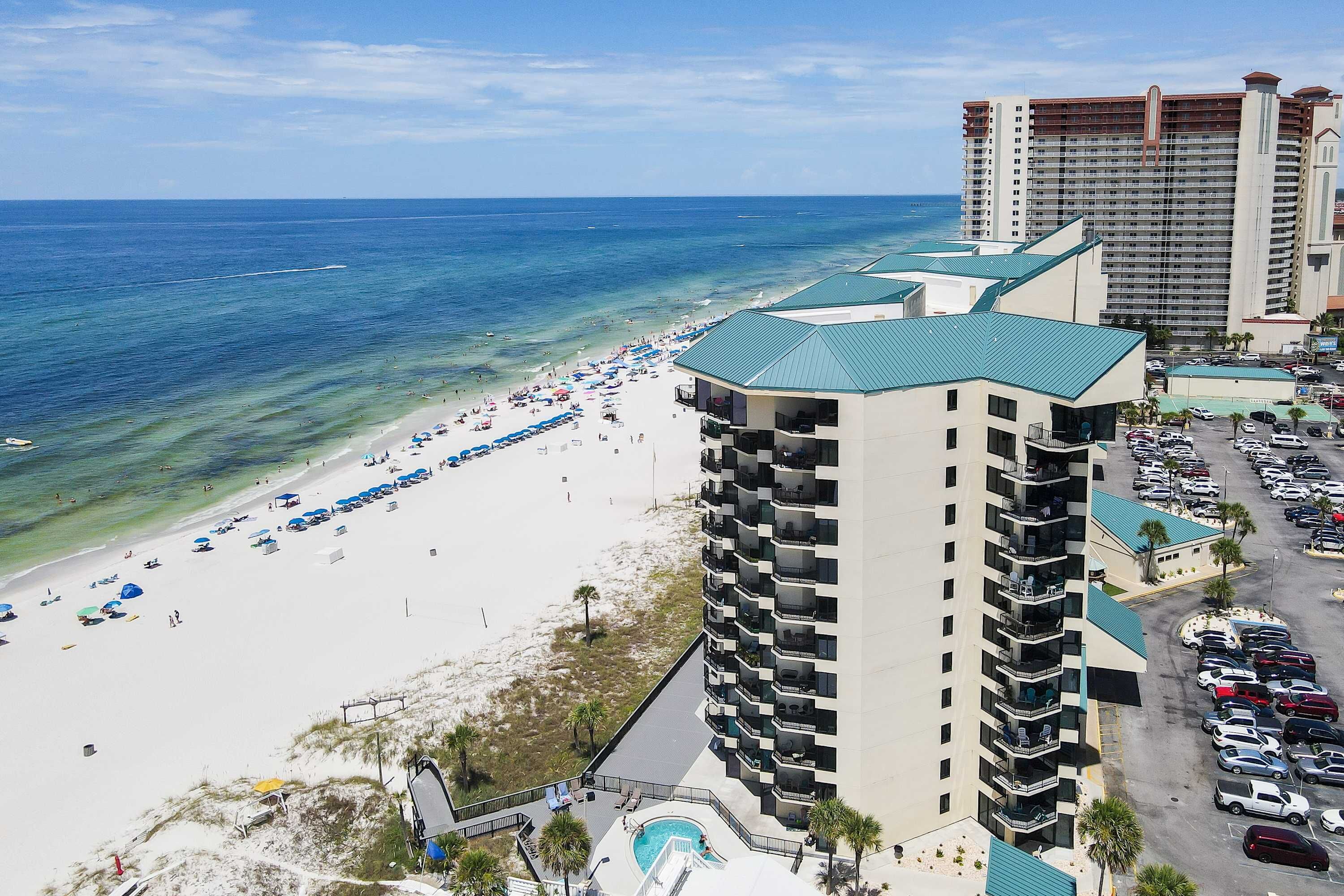 Cozy 1BR Beachfront Condo w/beach setup (Mar-Oct) & 3 pools in awesome Panama City Beach. Enjoy a relaxing stay with breathtaking sunrise views. Centrally located to all the attractions Panama City Beach has to offer. The bedroom features a comfortable queen bed, perfect for a great night's sleep after a day of adventuring or relaxing on the beach. The living room offers a sofa bed for additional guests. Included: Wi-Fi, Smart TV, access to a fitness room, tennis & pickleball courts and more!