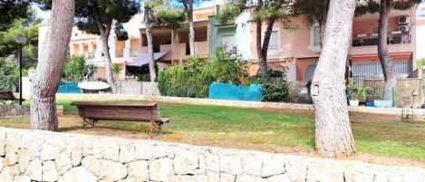 It has garden furniture, fenced plot, terrace, iron, communal seasonal pool, covered parking in the same building and television.