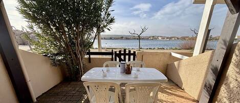 The advantages of this seaside rental: a terrace with garden furniture and private parking.