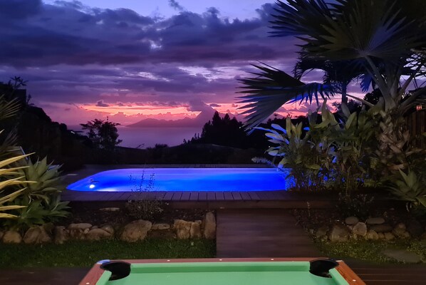 Villa Malya has everything you and your family need. From a beautiful fresh pool facing the ocean and Moorea Island to a large covered terrace welcoming a pool table and a table football.
