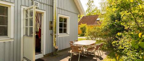 Layout: Ground floor: (Kitchen(hob(4 ring stoves, ceramic), electric kettle, toaster, coffee machine, oven, microwave, dishwasher, fridge-freezer), Living/diningroom(TV(satellite), dining table, fireplace, seating area), bedroom(double bed), bathroom(Bubble bath, shower, sauna(private), washbasin, toilet, bidet), Internet access) Attic: (bedroom(single bed, single bed), toilet(washbasin, toilet), mezzanine(small double bed), balcony) heating(electric), terrace, garden furniture, parking, parking, baby crib(paid), Towels/Sheets (extra fee)