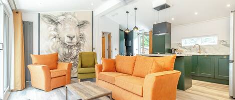 Set over a single level, this is a super stylish home bursting with contemporary furnishings and décor. From the hallway, head into the living area which is open to the kitchen/diner but cleverly designed to feel like a separate space, ideal for relaxing of an evening on the sofas in front of the TV. Dine at the table situated in front of the patio doors so you can eat while the breeze rolls in. The practical kitchen has plenty of storage and surface space. Back down the hallway are the three bedrooms, two are double, while the third is a bunk bedroom, perfect for the children of the group. Completing the interior is a family bathroom with a shower over the bath. Outside, enjoy the spectacular wraparound garden. There is a large lawn space where you can play around, and a patio area which is the perfect spot for al fresco dinners. To the side is the tempting hot tub, alongside a covered seating area, great for soaking away the days. Private parking for one car is provided.