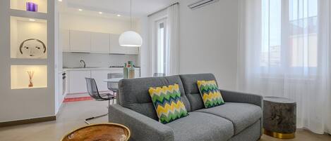 Elegant apartment on Via Tommaso Campanella 68, just a few steps from the Vatican and the metro. A perfect blend of modernity and classic details, featuring two double bedrooms, two en-suite bathrooms, and a well-equipped kitchen. Located in an area full of traditional restaurants, it offers both comfort and charm. The courtyard with a garden provides a peaceful atmosphere, perfect for unwinding after a day exploring the wonders of Rome.