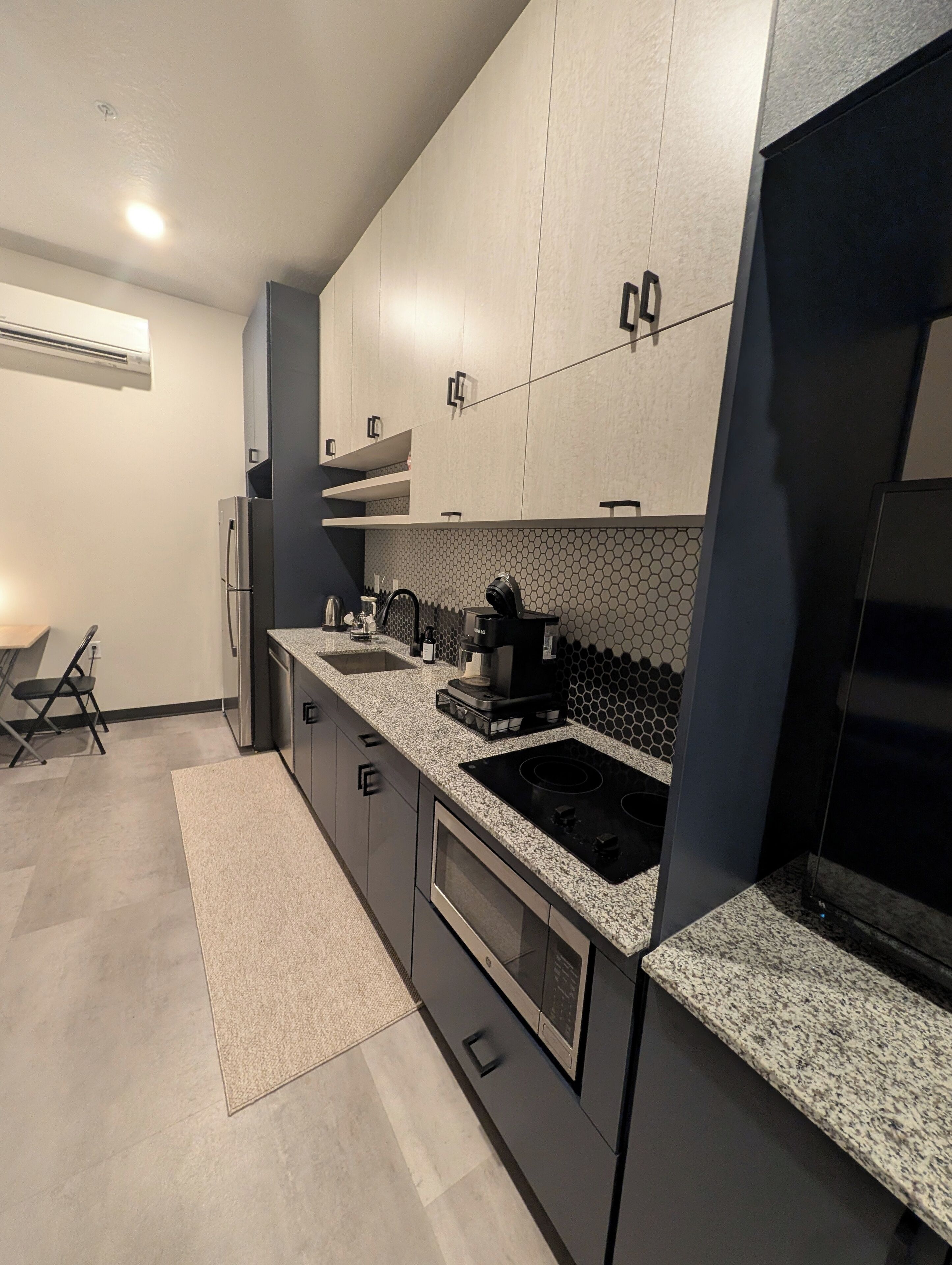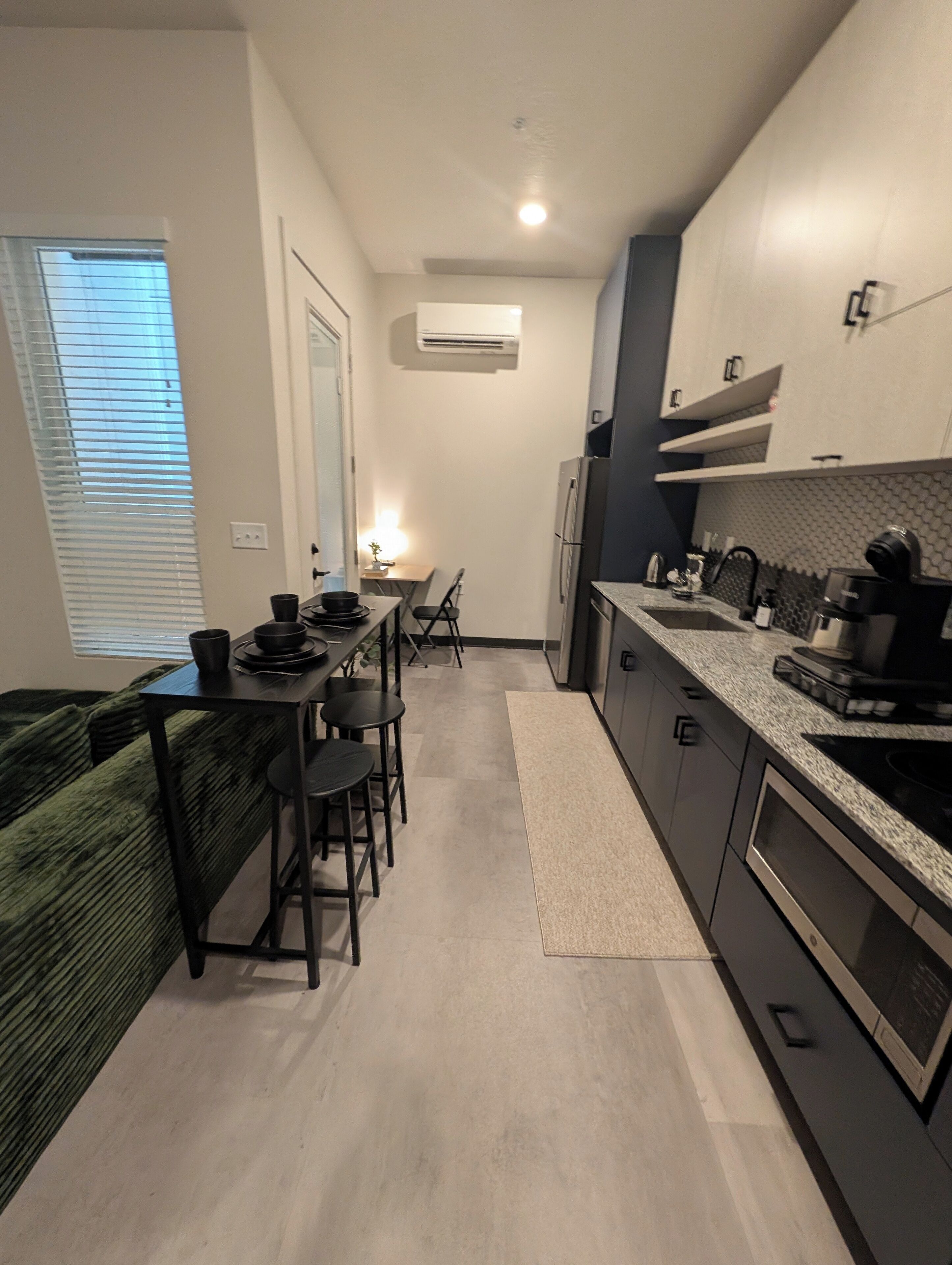 Fully remodeled and newly appointed in 2022, our spacious suite features designer decorative flourishes with a pristine kitchen stocked with all new appliances, spices and utensils to prepare your meal with seating for up to 4. For entertainment, host the big game on the living room s cable-enabled 65 inch High Definition TV. Or drift off to sleep in our plush bed watching the 55 inch TV in the bedroom. We include covered parking for 1.