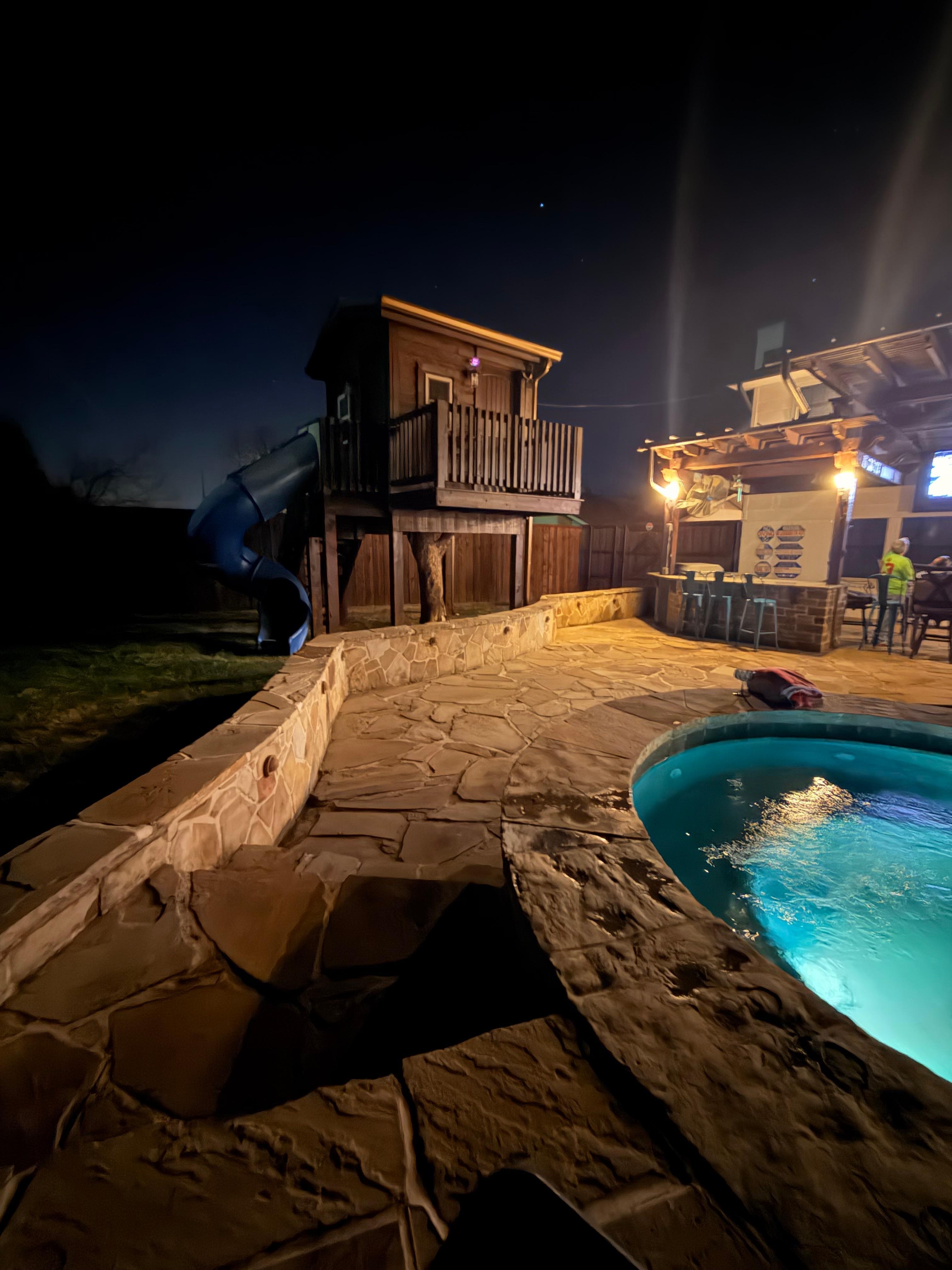 The house was beautiful as was the beautiful backyard. The pool in the Playhouse, andbackyard was just awesome. My only suggestions would be if you have a great Pool to please leave directions on how to work it when it is run by an app you’re supposed to download to your phone and pair with the pool equipment with no instructions to follow and pay extra for a heater, which is not included in the description of the home so long story short we only got to enjoy the pool for about two hours of our stay and it came on by itself at like 6 o’clock in the morning and then was off during the afternoon and evenings when we wanted to enjoy it so be careful about the pool rules as far as the heater because it’s not mentioned in the descriptions. It is a house made for large groups, but yet there isn’t enough furniture for everyone to sit on unless that’s including the furniture out by the pool. The dining room table just seats 3 the floors were a little dirty, but other than that it was a nice house. It just needs to be tweaked a little bit for larger groups And not having any instructions to operate the pool you have to pay extra for was a major disappointment for my grandchildren.