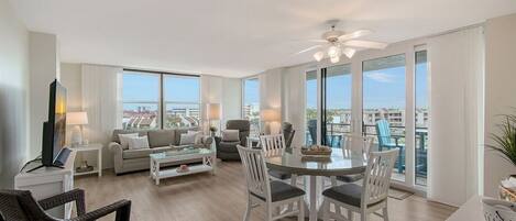 Absolutely gorgeous views of the Gulf of Mexico from the balconies are just one of the many features ...you will enjoy staying in this vacation home. Sitting in the living areas of this home you are overlooking the sights of Siesta Key. The openness of the floor plan allows for entertaining, family dinners and a sense of togetherness. The sliding gass doors open to create an indoor/outdoor living space where you can relax with picturesque views of the Intercoastal Waterway and the Gulf of Mexico. Prepare your favorite meals in the fully stocked kitchen connected to the living space. The large master suite boasts an ensuite bathroom with separate dressing area, walk-in closet and balcony access. The spacious guest bedroom also has a walk-in closet and balcony access. Complementary Wi-Fi is provided in the condo and through out The Anchorage complex.