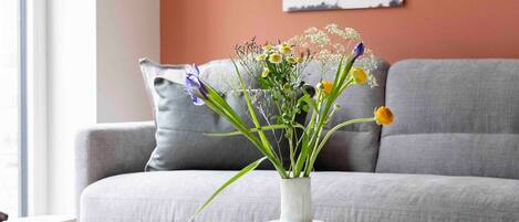 The "Seamaster" welcomes you with sustainable tiles from Royal Mosa that not only look good, but also feel good. The sophisticated design and high-quality furnishings create a cozy atmosphere, perfect for romantic moments for two. The living room invites you to relax. The comfortable furniture provides the perfect setting for relaxing hours and cozy evenings. The bedroom of the "Seamaster" is your retreat, equipped with a comfortable double bed for restful nights. The fully equipped kitchen has everything you need to prepare your favorite meals. Enjoy romantic dinners in the dining area or relaxed breakfasts for two.