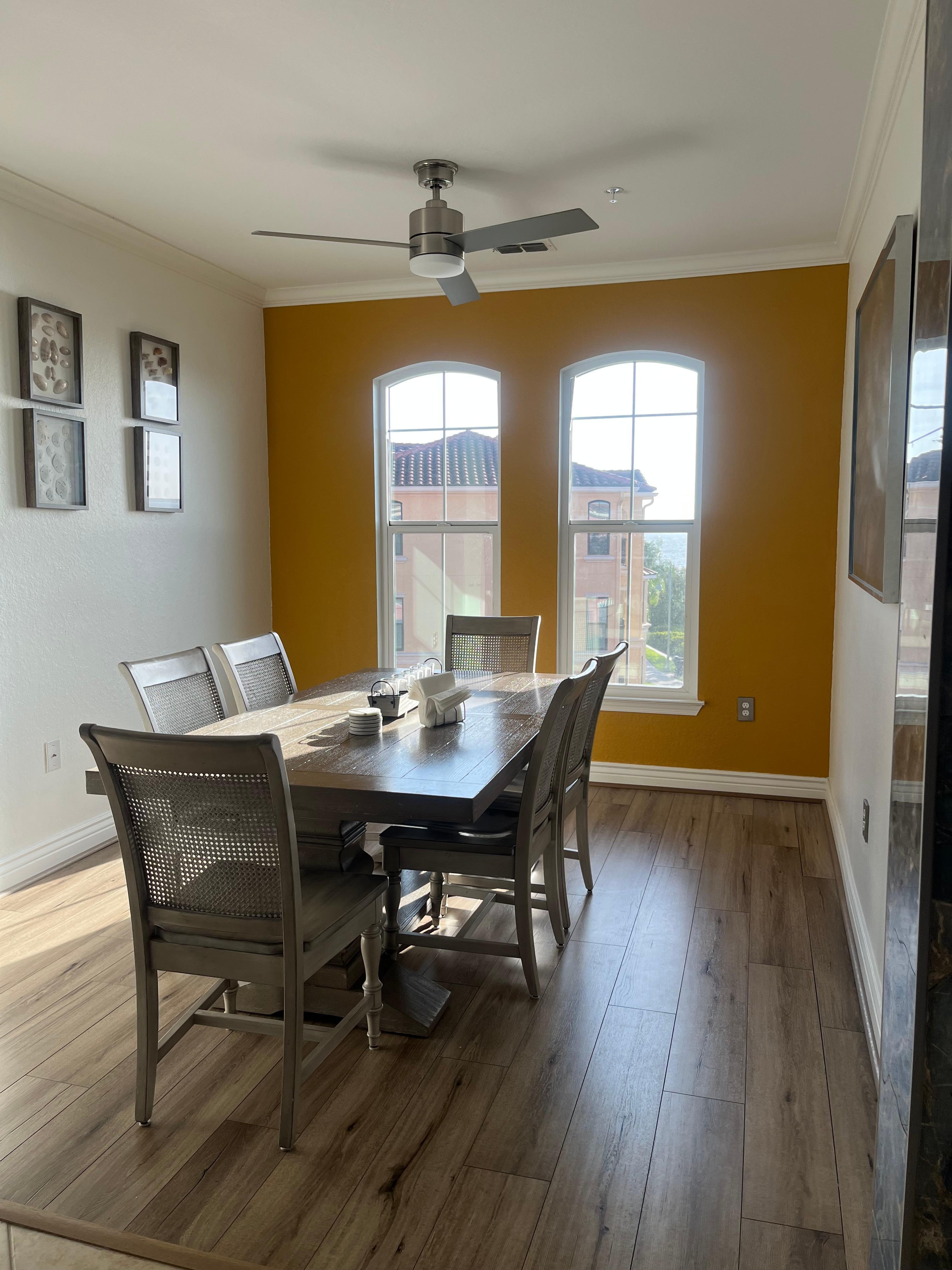 Dolphin Point has been updated (2021) with new stainless-steel appliances, all new furnishings and flooring. You will be very comfortable in this condo with its new, modern three-piece leather sofa group, Samsung 65" 4k TV, an expansive wood and quartz island with seating for three, a separate dining room that seats 6-10 and two full baths with essentials. The master suite has a king bed and two bedside tables with usb ports and full-size dresser with mirror. There are two large closets and a private bath with Roman tub. The second bedroom has a queen bed with tall dresser, side table and large closet. The third bedroom is configured more as an office with desk and external monitor - but does have a trundle twin bed with shelving and a large closet. This configuration easily accommodates 2-4 people with an occasional guest.