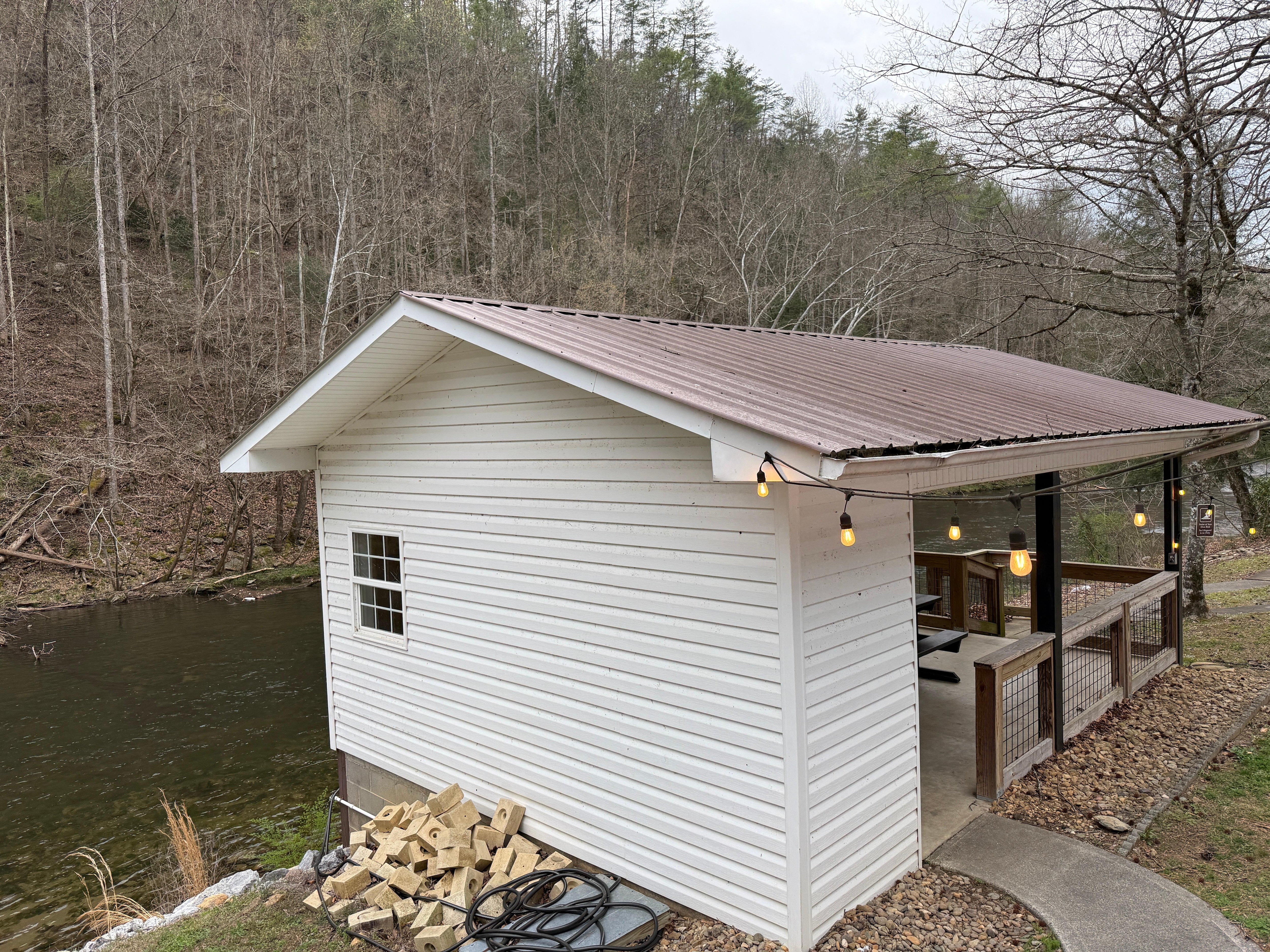 There are two chairs on the rear porch along with a privacy wall constructed between you and the closest neighbor. This is one of the only properties on the Little River that has this much space to roam, park, and have access to so much river. It is also one of the only river properties that does not have a direct view of highway 321 on the opposite side of the river. It is a truly unique space!
