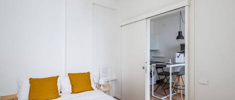 Functional and modern studio apartment of approximately 17 sqm located on the ground floor of a renovated period building WITHOUT a lift (one step to access it). The apartment is located in a quiet, traffic-free street, just a 7-minute walk from Piazza d