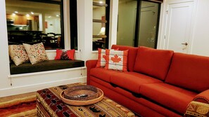 Great Room: King-sized American Leather sofa sleeper