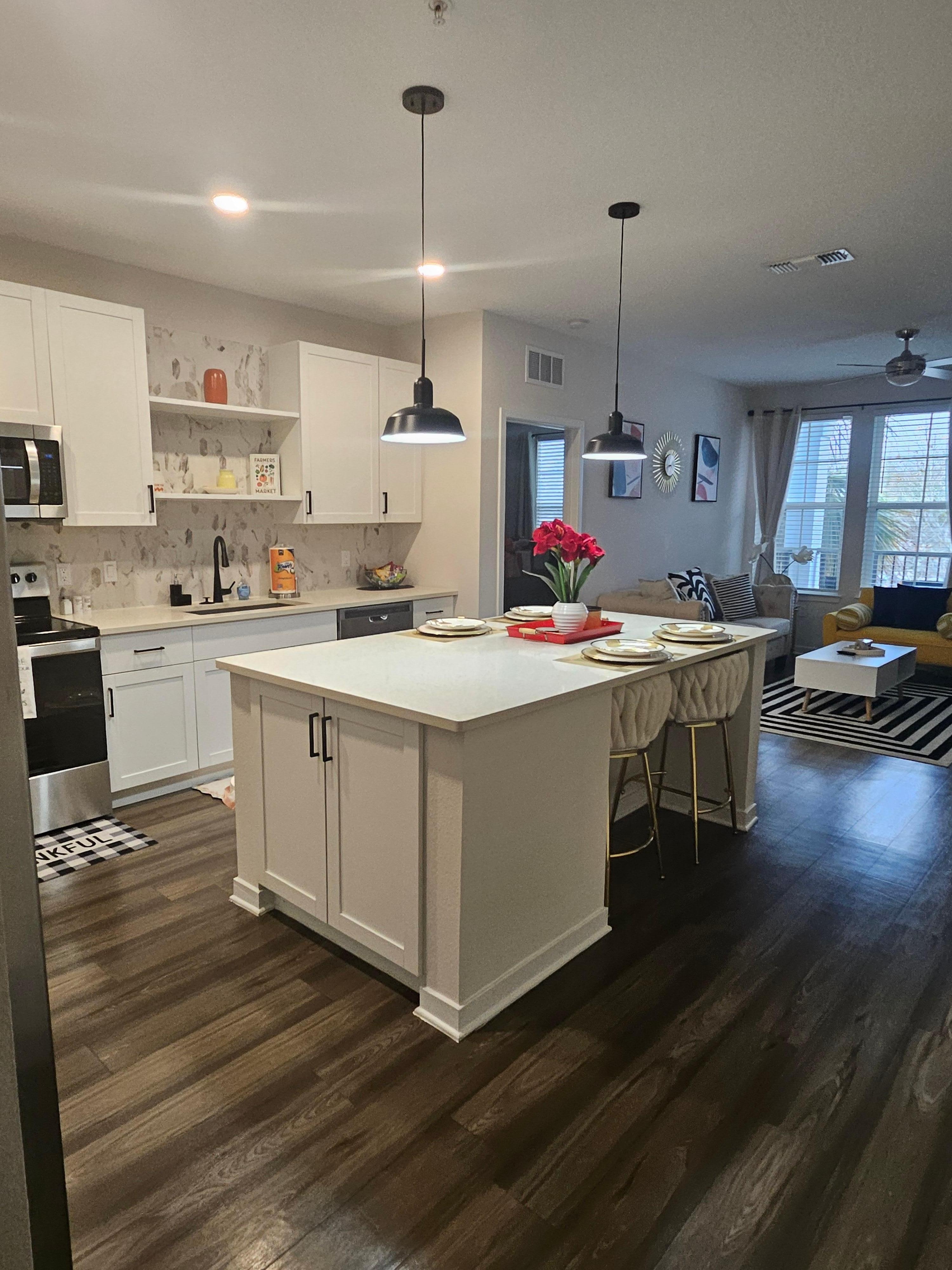Located in the heart of the charming down town Winter Garden. This Second floor, 2 bedroom apartment offers a king size bed in the main bedroom and a queen bed in the second bedroom where guests can relax in style. The community features a fitness room with a vast selection of equipment as well as a yoga room, A Game room, some hammocks and Grill station with outside sitting area.The Pool has cabanas and grill. The area is very popular to bikers as it is right by the infamous West Orange Trail. 2 minutes away is Highway 429 that connects you to Wekiva Springs as well as Advent health Hospital which is only 12 mins drive. On the other side on Colonial is the Orlando Health Hospital, West Oaks mall, alot of shopping and 7 minutes away on 429 is the Winter Garden Village. Whilst here please Pick a Saturday to visit the Farmers Market downtown, you will not regret it. I promise you will enjoy everything this gorgeous apartment and location has to offer.