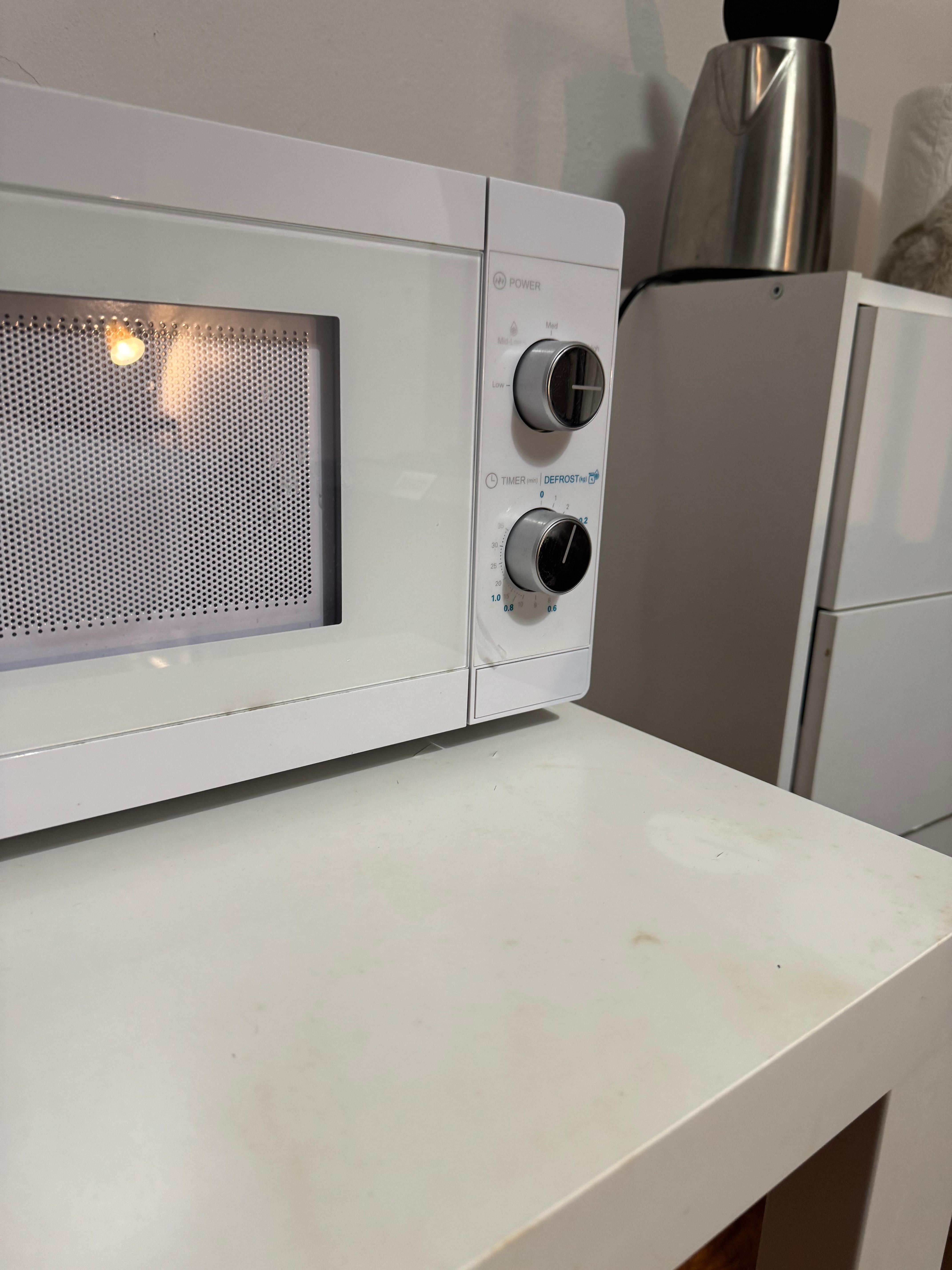 Microwave, electric kettle, set of dishes, cutlery, wine glasses